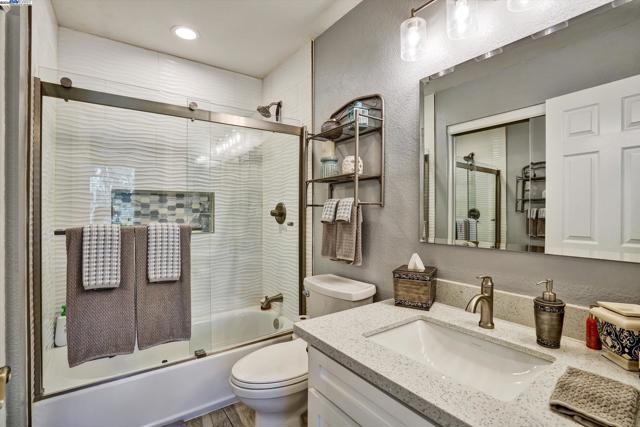 Seller will consider requests for buyer credit or concessions! Step into modern elegance in this updated 2 bedroom, 2 ensuite and a half bath downstairs condo. Boasting 1213 sq ft of open concept living space nestled in the secure gated community of Copper Hill. With pool, spa, playground and tennis courts! Newer carpeting upstairs, new laminate flooring downstairs, a beautiful remodeled kitchen, new appliances, granite counter tops, shaker cabinets and a center island. New paint, LED lighting, in ceiling speakers, extra canned lighting, and a beautiful gas fireplace. Garage has a level 2 EV outlet. Located minutes from restaurants , shopping, 580 freeway, the local downtown and the farmers market. It's everything you need for comfortable, convenient living. Whether you are a first time buyer, downsizing or seeking tranquil living, this is the home for you. Come take a peek and see for yourself. Open Sun !0/5 12 to 3. Call agent when at gate to enter at 925-321-1358