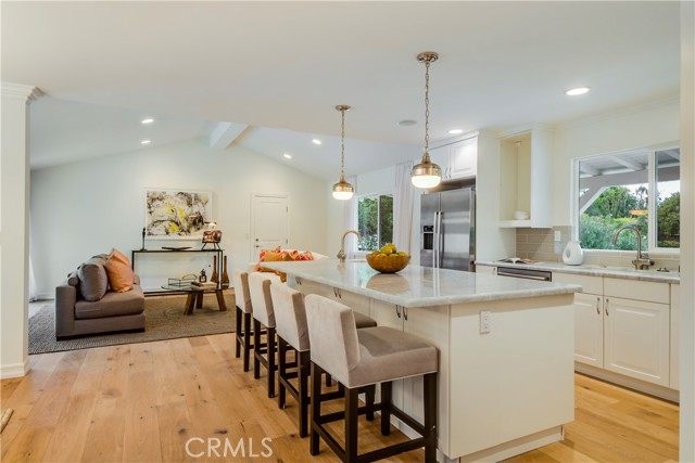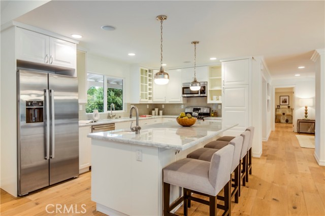 Set back off the street, on a sprawling blanket of grass, sits this spacious, one-level Ranch home. Extensively remodeled in 2015, this virtually new home features an excellent floor plan, centered around the beautiful kitchen. The adjacent family room, dining room and living room with fireplace all overlook the newly refinished pool and huge patio creating the ultimate summer entertainment area. The rear yard was professionally designed and includes numerous stack stone planters with lush landscaping and complimented with extensive lighting to entice any nighttime gathering. The master suite has a luxurious master bathroom and two walk-in closets. Wide plank hard wood floors, newer doors and windows, newer roof, newer kitchen and bathrooms. The front yard features a large covered front porch, a long driveway and a sprawling grassy play yard. Additional features include tankless water heater, newer AC system, upgraded electrical panel, new interior lighting, sewer line upgrade, hardwired for the Internet and so much more. Access to the award-winning Palos Verdes school district including Rancho Vista Elementary, Miraleste Intermediate School and the option to attend Peninsula or Palos Verdes high school. This Rolling Hills Estates home is a one-of-a-kind property sure to be at the top of everyone's list.