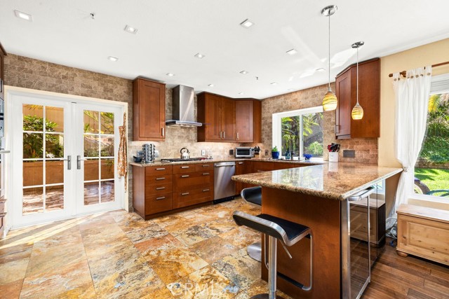 Gorgeous Forster Ranch home set on an expansive, oversized private lot. This spacious residence offers 4 bedrooms and 3 full baths, including a convenient main floor bedroom and bath. The remodeled kitchen features new cabinetry, stainless steel appliances, a wine refrigerator, and granite countertops. The kitchen opens seamlessly to the warm and inviting family room with a cozy fireplace. A formal living room with soaring vaulted ceilings and an open, light filled dining room create an ideal space for entertaining. Both guest baths have been beautifully updated, and the primary suite includes an ensuite bath and an oversized private balcony showcasing views of rolling hills and city lights. Additional highlights include hardwood floors, newer double paned windows and French doors leading to the backyard. The backyard is a true retreat, perfect for gatherings, with a beautiful flagstone patio, mature trees and exceptional privacy. Ideally located on a highly desirable street close to award-winning schools, shopping, neighborhood parks, San Clemente beaches and convenient freeway access.