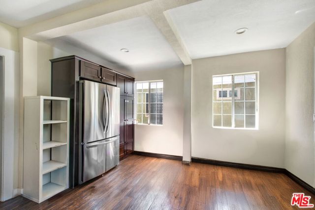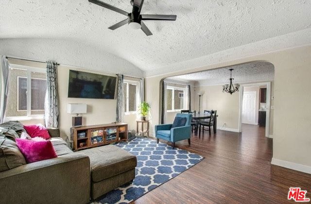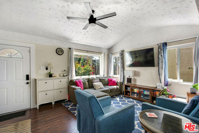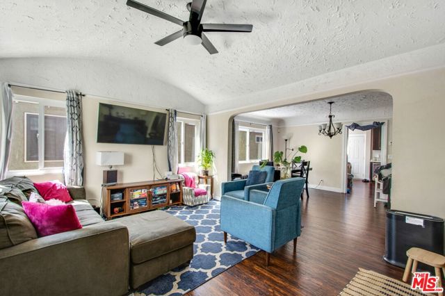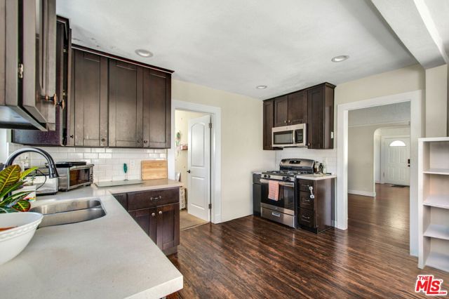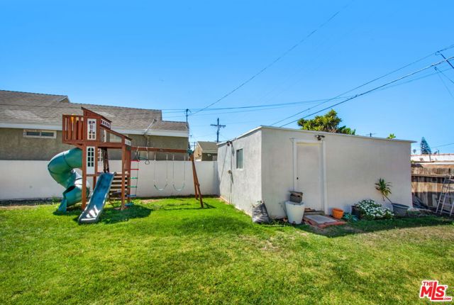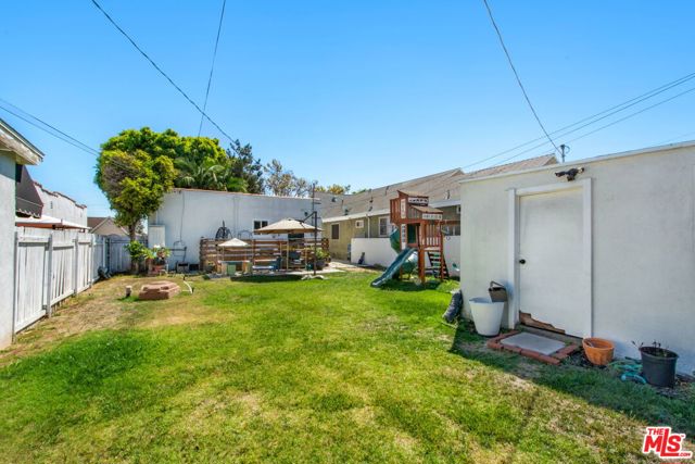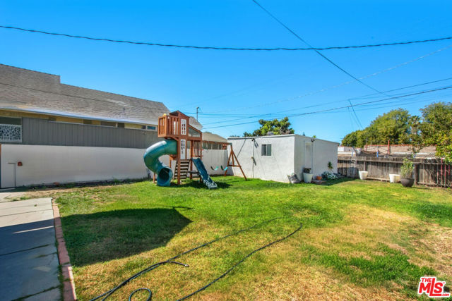 This nicely remodeled 3-bedroom, 1-bath bungalow offers charm, comfort, and a rare oversized yard in a well-established Los Angeles neighborhood all at an affordable price! . Set back from the street and framed by a white fence, the home welcomes you with an ample front yard and cozy porch. Inside, an open floor plan features vinyl plank flooring, abundant natural light through double-pane windows, and seamless flow between the spacious living and formal dining rooms perfect for entertaining or everyday living. The fully remodeled kitchen shines with stainless steel appliances, a double sink, sunny backyard views, and space for a small island and in-kitchen laundry. The primary bedroom sits at the front, while two additional bedrooms and a full bath with built-in storage complete the thoughtful layout. Step outside to a grassy backyard with a wood deck, custom playset, fruit trees and plenty of room for gardening, recreation, or even a future ADU. An added rear storage room expands functionality, while gated driveway parking provides convenience and security. With its inviting spaces, generous lot, and desirable price, this is the ideal starter home for buyers seeking both value and lifestyle in Los Angeles.