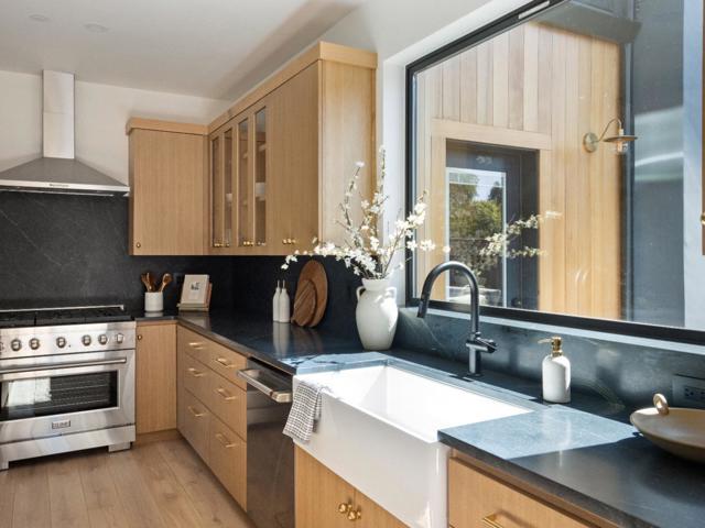 This property at 3240 N. Main St. needs to be seen to appreciate the beautiful finishings and design of the 2,895 sq. ft. main house and the 665 sq. ft. ADU (which is fully accessible from the main house). The one-bedroom ADU with high ceilings is perfect for guests, intergenerational living, or rental income.Inside the main home, every detail reflects top-tier craftsmanship with an expansive open-concept layout, soaring ceilings, and automated skylights filling the home with natural light. Wide-plank oak flooring, custom cabinetry, and richly veined soapstone countertops elevate the interiors, while dual kitchens with Café appliances and alabaster lighting make entertaining effortless. Two spacious primary suites: one on each level; offer spa-like baths with steam showers, Zellige tile, and solid wood vanities. Smart upgrades include Nest thermostats, keyless entry, a new roof, HVAC, and plumbing. Outside, the landscaped yard features a sunny deck, patio, and garage. Ideally located within walking distance to shops, parks, beaches, Soquel Village, and highly rated Main Street Elementary; this turnkey property blends modern comfort and convenience with timeless Mediterranean-inspired design.