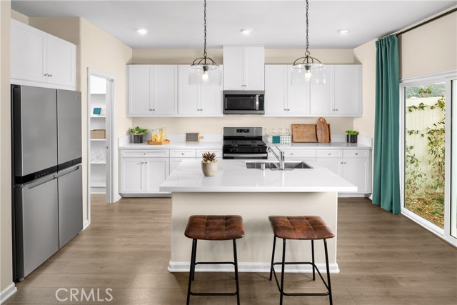 This professionally designed model home in the gated Iris Park community of Moreno Valley is move-in ready, fully landscaped — with fantastic seller incentives available! Ask about limited-time incentives and flexible financing options that may help to reduce closing costs or monthly payments. If you’ve been renting and dreaming of a home that’s fully finished, low maintenance, and just feels “done,” this is the one. The Lansing floor plan offers 4 bedrooms, 2.5 bathrooms, a 2-car garage, and an open-concept layout that’s both comfortable and functional. The first floor features a spacious Great Room and dining area that flow into a modern kitchen with a large island, quartz countertops, upgraded cabinetry, and walk-in pantry. Upstairs, you’ll find all four bedrooms, including a generously sized Primary Suite with dual sinks, a walk-in shower, and a large walk-in closet. A flexible loft adds extra space for a home office, media zone, or play area. The laundry room is conveniently located upstairs near all bedrooms. As a professionally curated model home, it includes over $100,000 of designer-selected finishes, upgraded flooring, and complete landscaping — so you don’t have to worry about a thing. Just bring your furniture and move in. A full Solar System is Included!! Built by Beazer Homes, the nation’s #1 builder of DOE-certified Zero Energy Ready Homes, this home is designed for energy efficiency, long-term savings, and improved indoor air quality with Indoor Air Plus certification. Please note - the pictures are of the actual home!