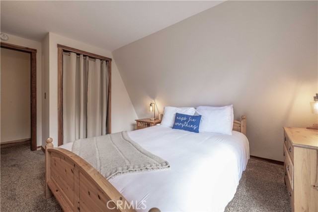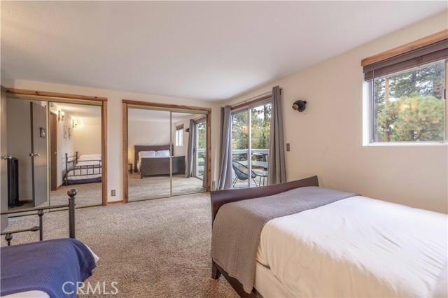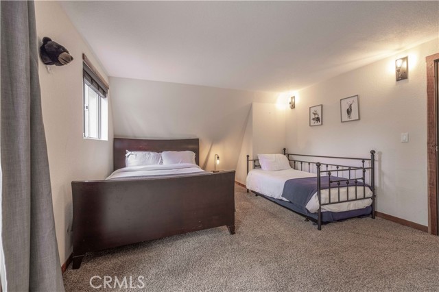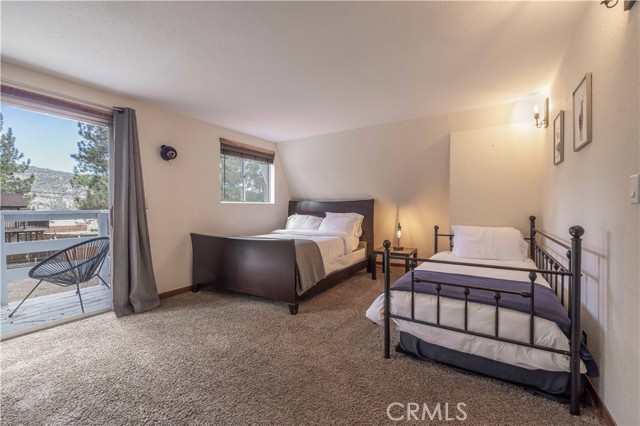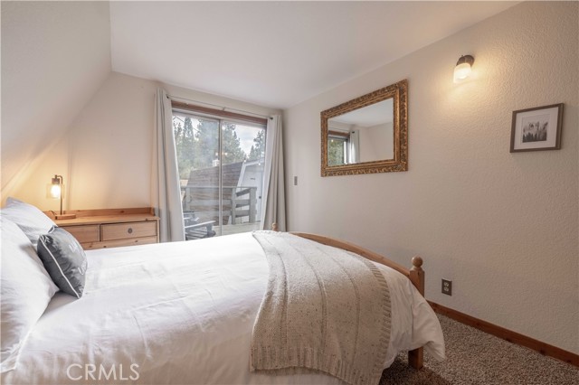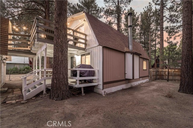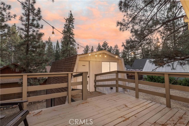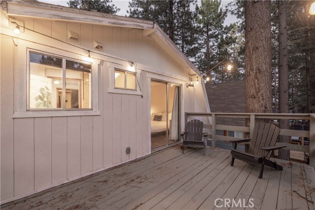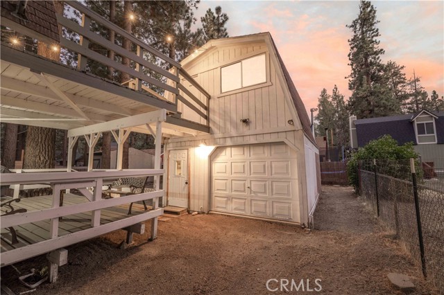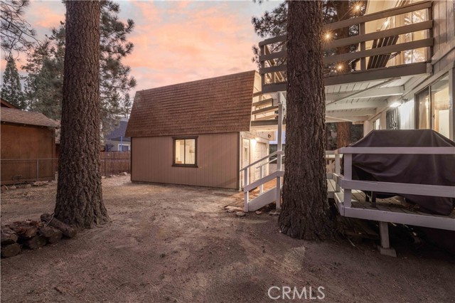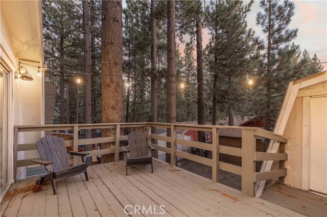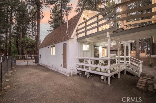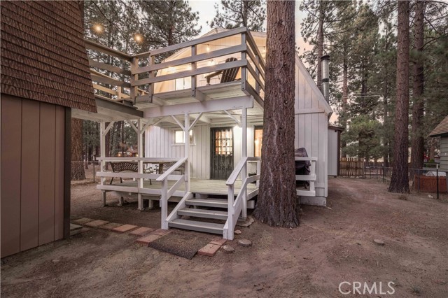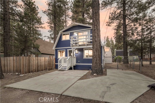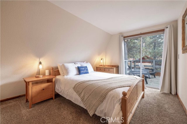 Tucked at the end of a quiet street in Big Bear City, this light and bright retreat offers stunning views and is surrounded by pines. The open living area features a native stone fireplace, wood accents, and a fully recently renovated kitchen with quartz counters, newer appliances, and open breakfast bar, ideal for entertaining. Upstairs, two spacious bedrooms boast vaulted ceilings, abundant light, and views from a private deck. A bonus detached room adds flexibility as an office, studio, or third bedroom. The spacious patio is ideal for dining or lounging while taking in the mountain air. Enjoy extra storage in the detached garage and ample room for parking or storing toys in the gated driveway. Turnkey, close to hiking, skiing, the village, dining, and shopping, ideal as a full-time home, vacation getaway, or income rental.