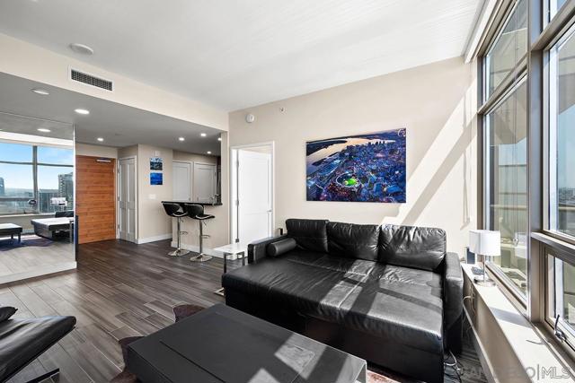 Arguably the most dramatic downtown skyline view you'll find! This elegant view unit is replete with natural light and views. Once you walk in, you feel the city ambiance. Many tastefully completed updates create an urban feel for the modern downtown resident to include: new cabinets, updated counter tops, solid surface flooring, and more. Electra is located in the heart of the cities emerging development and within a stone throw to the coveted San Diego Bayfront. Enjoy the nightlife and eateries that San Diego is known for just steps away!