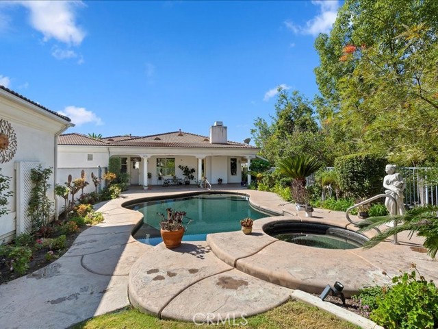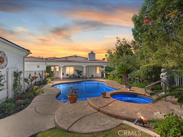 Welcome to this stunning custom single-story estate! From the moment you arrive, you’ll be impressed by the thoughtful design, open floor plan, and attention to detail that make this home truly special. This residence offers 3 bedrooms, 3 bathrooms, an office, and a spacious 5-car garage with gated RV parking. The chef’s kitchen features granite countertops, upgraded appliances, and a dining area overlooking the inviting family room with fireplace. You’ll also find a formal living room and a formal dining room, perfect for entertaining. The oversized primary suite boasts two large walk-in closets, a spa-like bathroom with a double shower, and a relaxing Jacuzzi tub. Set on a 60,113 sq ft corner lot, the property showcases lush landscaping, fantastic curb appeal, and a park-like atmosphere. The backyard is a private retreat with a Pebble Tec pool and spa, wrap-around patio, raised garden boxes, and multiple fruit trees—perfect for gatherings or quiet evenings at home. Additional highlights include paid-off solar panels, two upgraded AC/heating units, New attic insulation and plenty of parking for guests. Conveniently located near shopping, schools, and essential amenities, this home blends luxury, comfort, and efficiency.