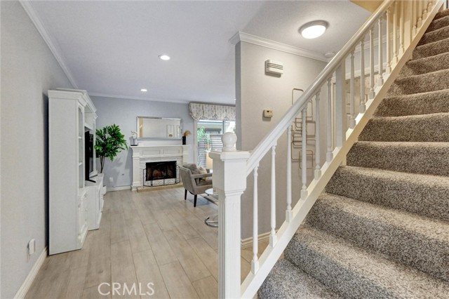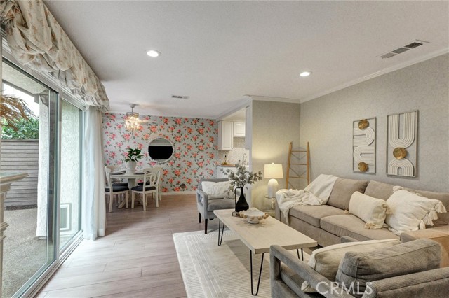 Charming and updated townhouse located in the highly sought-after and well-manicured Glendora Gardens community. You'll feel right at home once you enter the light-filled and spacious living room with clean lines and cozy fireplace. Beautiful flooring throughout. Seamless transition to the remodeled kitchen and dining area. Sliding doors will take you out to a fully-enclosed and private patio area. Updated guest bathroom located downstairs. Upstairs you'll find two large bedrooms with new carpeting and each with their own remodeled bathrooms and balconies. Laundry room is conveniently located inside. Finished two-car attached garage offers plenty of storage place. Corner unit offering more privacy and great curb appeal. Welcome home!