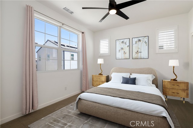 PAID OFF SOLAR, Energy-Efficient two-story detached home nestled in the vibrant and highly sought-after Nuvo Parkside gated enclave—where luxury living meets community charm! This modern contemporary gem is the epitome of style, comfort, and functionality. Bathed in natural light, the open-concept layout showcases refined interiors and a chef-caliber kitchen with quartz countertops, sleek tile backsplash, clean & fresh cabinetry, recessed lighting throughout, and an oversized pantry space—ideal for both entertaining & everyday living, perfect for culinary enthusiasts & entertainers alike. Located just off the kitchen, you have direct access to the fully vinyl fenced concrete slab backyard patio—perfect for outdoor lounging or al fresco dining. Home features a guest powder room downstairs and 2 generously sized & inviting bedrooms with 2 additional bathrooms upstairs. Primary suite includes its own private/spa-like en-suite bath: dual quartz vanities and a frameless glass-enclosed shower. Upstairs also features a versatile loft area ideal for a home office, study nook, or creative studio, along with a convenient laundry closet equipped with Samsung washer and dryer. Home includes an attached one-car garage with an additional private parking space, complemented by ample guest parking available throughout the community. Resort-style amenities designed for families & working professionals include: an olympic sized swimming pool with heated spa, a fully equipped modern fitness center, a fun-filled children’s playground, a dog park for your furry companions, a stylish clubhouse, a multipurpose room and an outdoor BBQ area perfect for big gatherings. while all being conveniently close to Costco/99 Ranch, Victoria Gardens, The Shoppes at Chino Hills and the major freeways: 1-10, 1-15, & Ontario International Airport. With the Ontario Regional Sports Complex opening in 2026 and Ontario Ranch Grand Park Phase 1 opening in 2027, this area is set for exciting growth and vibrant community life. Now is the perfect time to make this home yours!