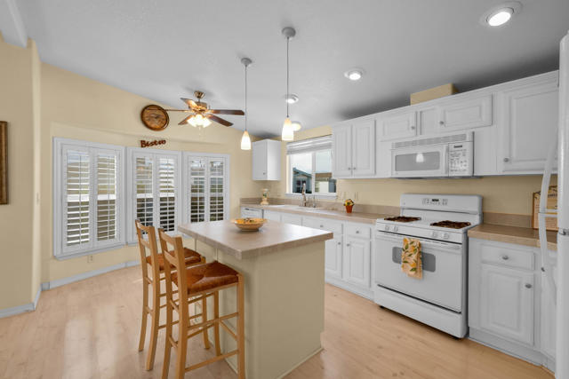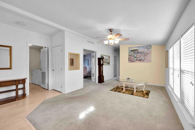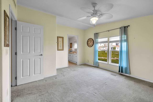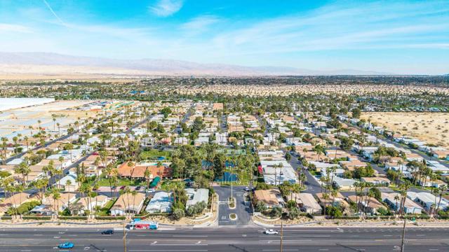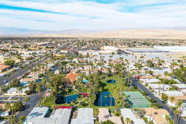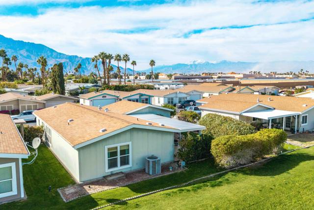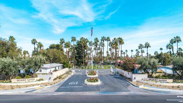 Beautiful 55+ Gated Community with panoramic views of surrounding mountains, One of the largest homes & located in the newest section at Desert Sands Mobile Home Park. Triple wide with 2 car garage. Spacious living room/den, family room. The dining room area & Kitchen have laminate flooring. Ceiling Fans thru-out. Light & bright with lots of windows... The master bedroom is wall-to wall glass windows looking out to the greens. Lush large side yard with lots of privacy your own little paradise in your backyard. French doors that lead to a covered patio back patio area or go thru garage, it's perfect for entertaining. Master bath having dual sinks and an oversized shower. Great home at an affordable price. Desert Sands is a gated senior community, with pool, spa, sauna, clubhouse, fitness room, pool tables, card room, meticulous grounds and onsite management. Conveniently located only minutes from nearby shopping, dining, airport, casinos and more. Great community. Easy to show on short notice. Agents review private remarks.