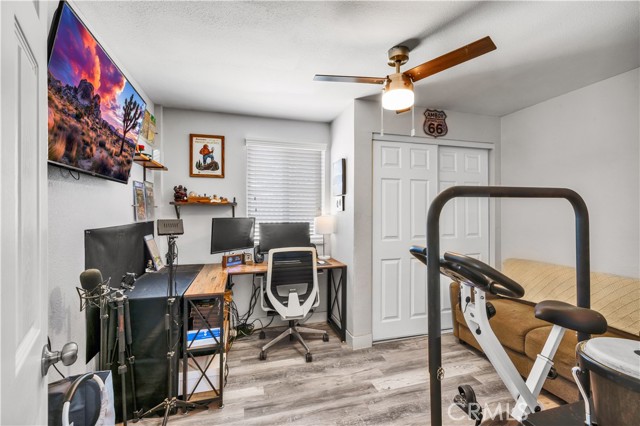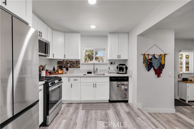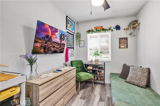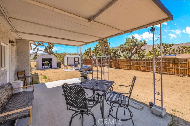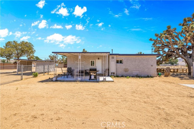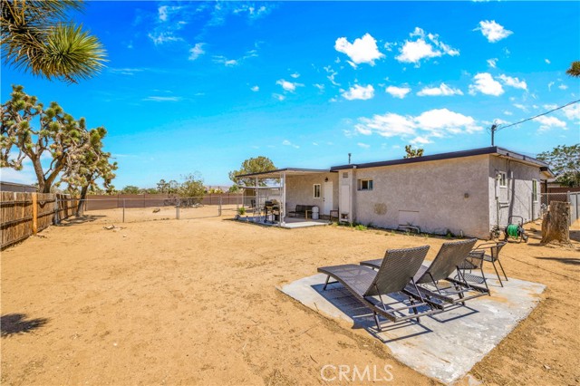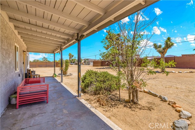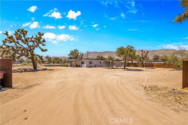 Updated 2 Bed + Bonus Room on Over Half an Acre in Yucca Valley with PAID SOLAR! Welcome to this charming and newly updated 2-bedroom, 1-bath home with a bonus room, offering 1,120 square feet of living space on a fully fenced 0.54-acre lot in beautiful Yucca Valley. Step inside to find luxury vinyl plank flooring throughout, a completely remodeled kitchen with new cabinets, countertops, and appliances, and an open-concept layout connecting the kitchen, dining, and living areas—perfect for everyday living and entertaining. The mini-split system in the living room ensures comfort year-round. The updated bathroom features a stylish tile shower/tub combo, and the bonus room offers flexibility—ideal for a home office or guest space. Outside, enjoy a covered front porch, covered back patio with sweeping views of the northern mountains, and plenty of space for parking thanks to the circular driveway. There’s also a new backyard Tuff shed for additional storage. The property features a completely paid solar system that is on the ground and fully fenced which makes maintenance a breeze. With its great location, modern updates, and spacious lot, this home is a fantastic opportunity—whether you’re looking for a primary residence, a desert getaway, or a long-term investment. Call today to schedule your private tour!