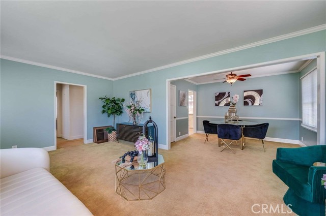 Charming ranch-style home located near the Lakewood Country Club. Flooded with natural light, the spacious living and dining areas create a warm and welcoming atmosphere. The updated kitchen showcases crisp white cabinetry, Corian countertops, and a generous pantry for storage. Additional highlights include crown molding, dual-pane windows, copper plumbing, and the convenience of an inside laundry area. Three nice-sized bedrooms. Step outside to a large backyard featuring a covered patio and expansive lawn—ideal for entertaining or relaxing. A long driveway with RV parking leads to a two-car garage, offering plenty of space for vehicles and storage. Ideally situated close to the LBX for shopping and dining, with nearby bike paths and easy freeway access for commuters.