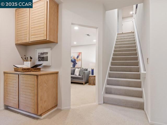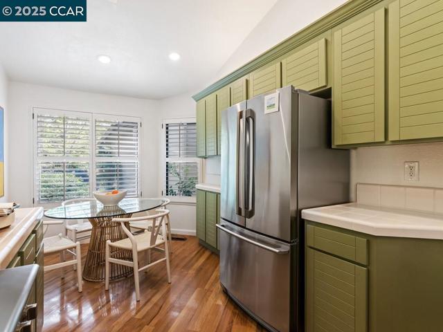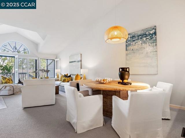 Beacon Ridge end of cul-de-sac with primary on main level! Gated community on the Lafayette/Walnut Creek border with Lafayette/Acalanes schools, Beacon Ridge offers a serene setting with pool, spa, tennis/pickleball courts, mature trees & landscaping, & views of the surrounding hills. An especially desirable floor plan with the primary on the main level, high vaulted ceilings, skylights, modern updates & a bonus room. Glass siding doors from each room offer excellent indoor/outdoor enjoyment. Hardwood floors, new carpet, plantation shutters, noteworthy updates to two bathrooms. Private setting surrounded by lovely mature trees with views of the hills. Sunny kitchen & breakfast room offers Electrolux stainless steel appliances. Spacious primary suite on the main level has a large walk-in closet, lovely bathroom w double vanity & private w.c. Sophisticated powder room. Laundry room w built-in cabinetry. Two-car garage w interior access. The location within Beacon Ridge is spectacular. Guest parking, a grassy field & and beautiful mature trees. There is a walking path down to Springhill Elem and Acalanes High School. Adjacent open space w gate access to hiking trails. Minutes to vibrant downtown Lafayette and Walnut Creek for shopping and restaurants, and easy commute access.