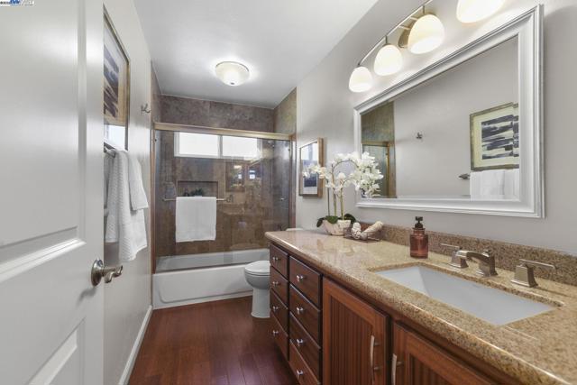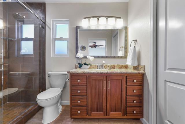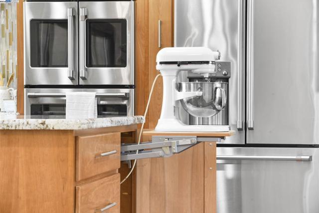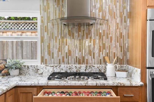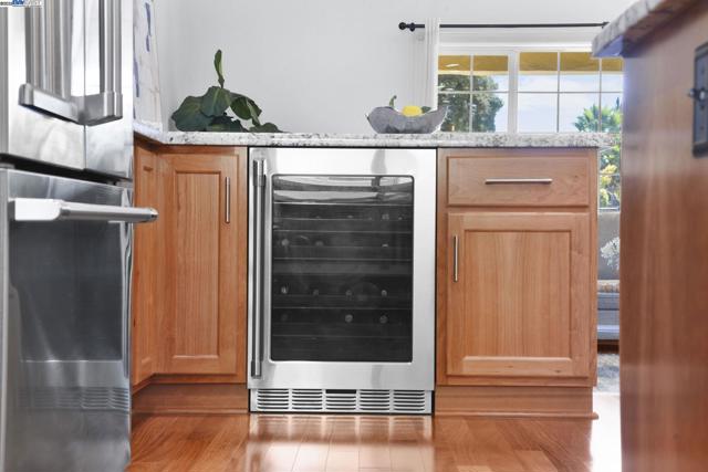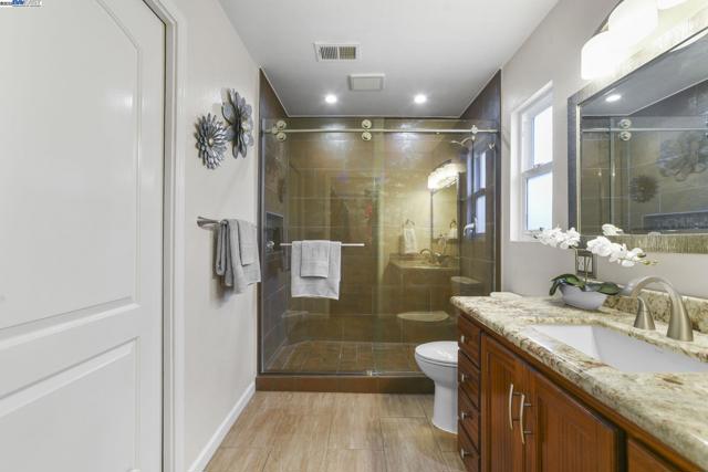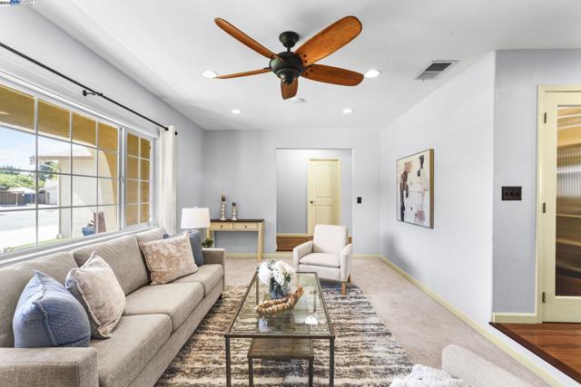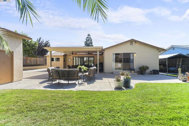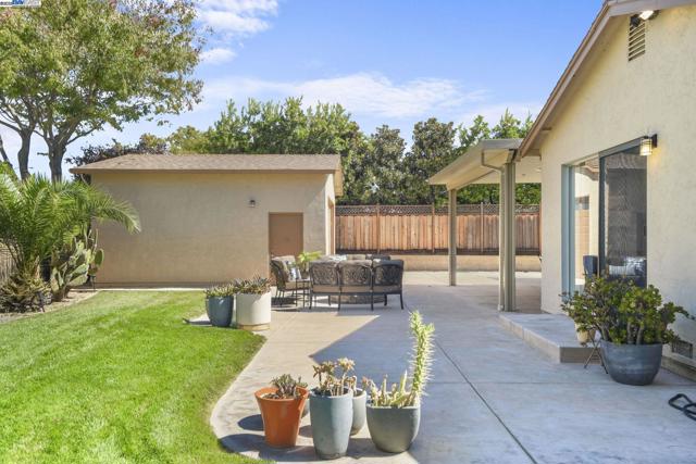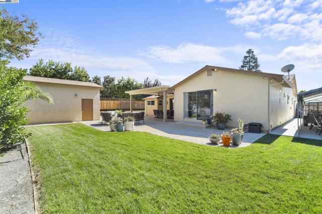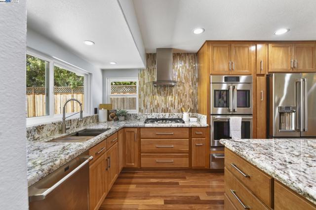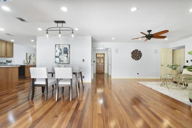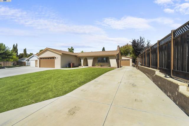 This beautifully updated home blends luxury, comfort, and functionality inside and out. The chef’s kitchen features custom cabinetry paired with granite counters, an island, stylish glass tile backsplash, modern lighting, and GE Café stainless steel appliances—including dual oven with French doors, 5-burner gas cooktop, wine fridge, and more. Brazilian teak hardwood floors flow through the main living areas, where the family room offers built-in surround sound and a stunning folding glass wall with retractable screen that opens to the backyard. The spacious primary suite boasts new carpet, a gas fireplace, walk-in closet, backyard access, and a private bath with heated tile floors and a large shower. Outdoor living includes a covered patio with stamped concrete, ceiling fans, speakers and gas fire pit. The property has a 9,977 sq.ft. lot, a 2 car attached garage plus a large insulated DETACHED SHOP, and 2 long concrete driveways can accommodate multiple recreational or other vehicles. with 30-amp plug, wide driveway, turf front yard, whole-house fan, tankless water heater, security system, and more. Enjoy all that Livermore offers—award-winning wineries, craft breweries, and vibrant downtown dining and shopping and easy access to the Bay Area and Silicon Valley via I-580 and BART