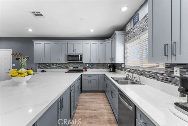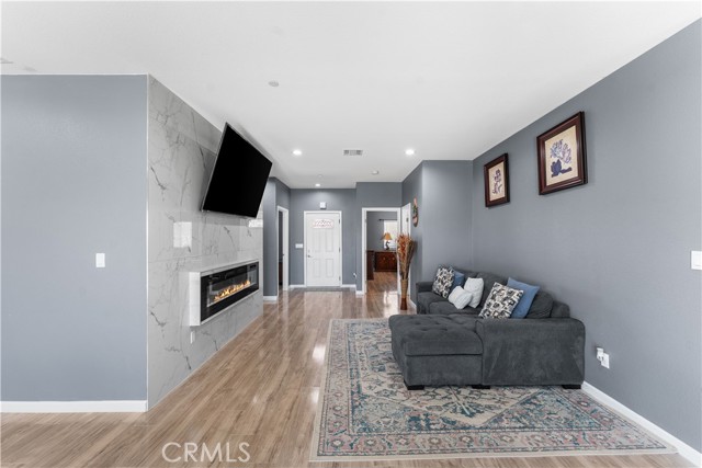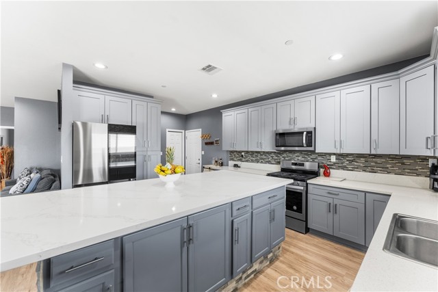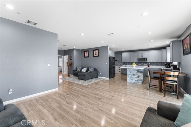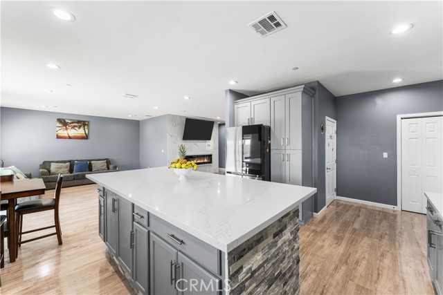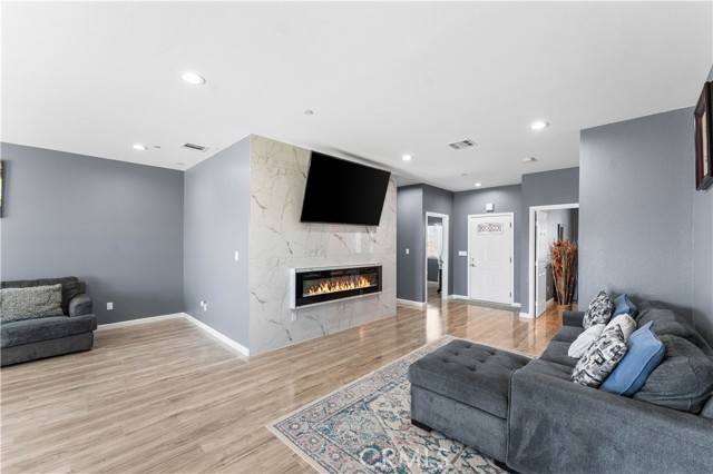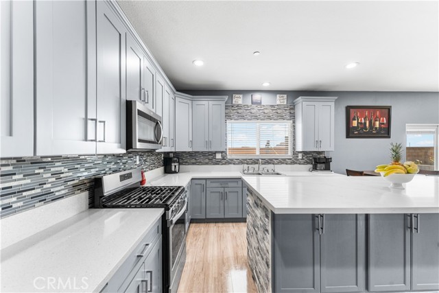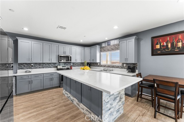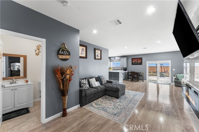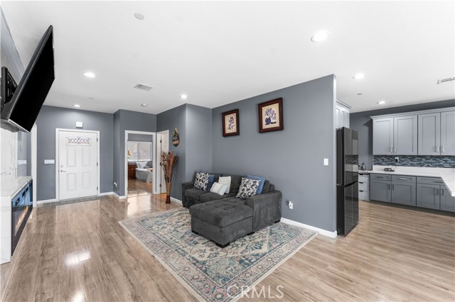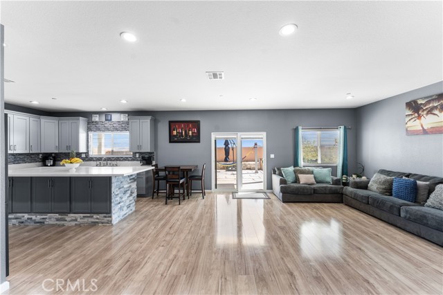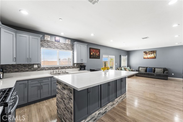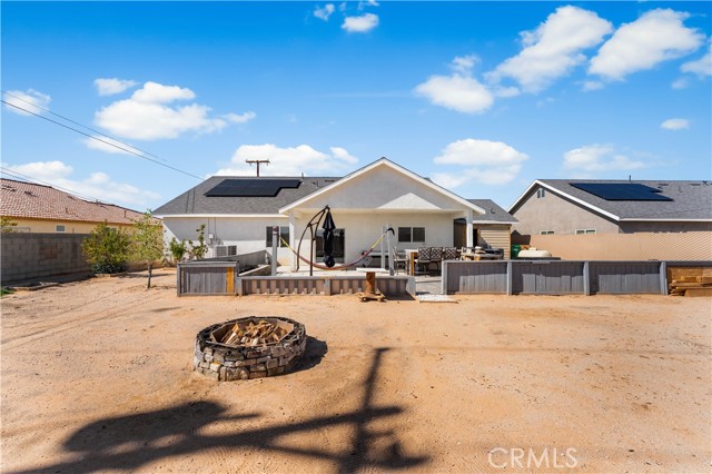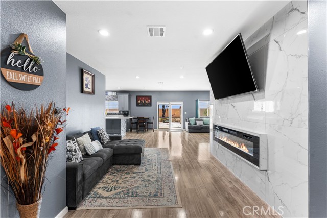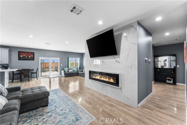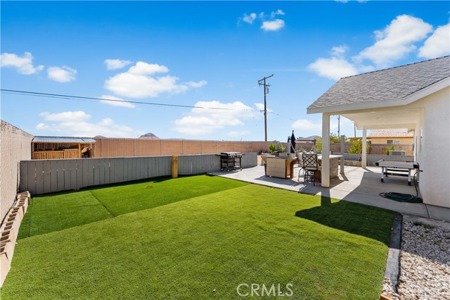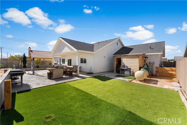 Welcome to this beautifully upgraded 4 bedroom, 2.5 bathroom home built in 2022, offering 2,137 sq. ft. of living space on a spacious 10,018 sq. ft. lot. Designed with comfort and modern living in mind, this home combines thoughtful features, energy efficiency, and plenty of room inside and out. The open floor plan creates a seamless flow from the living area to the kitchen and dining space. The kitchen is well equipped with quartz countertops, stainless steel appliances, a walk-in pantry, and a stone wrapped island with seating. In the living room, a custom fireplace with a marble backsplash adds style and warmth, making it the perfect gathering spot. Recessed lighting throughout brightens every corner of the home. Solar panels, 220 amp electrical service, propane gas, and city water. These upgrades not only add value but also keep the home efficient and reliable. The backyard is set up for both relaxing and entertaining. A covered patio with concrete flooring and artificial grass create a low maintenance setting, while the outdoor island with seating is perfect for BBQs and gatherings. A cozy fire pit, a convenient shed, and the spacious lot make it the ideal space for outdoor enjoyment. With over 10,000 sq. ft. of land, there's room to add a pool, an ADU, or expand your outdoor living area. This home has it all style, space, and possibilities.