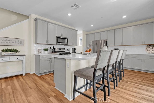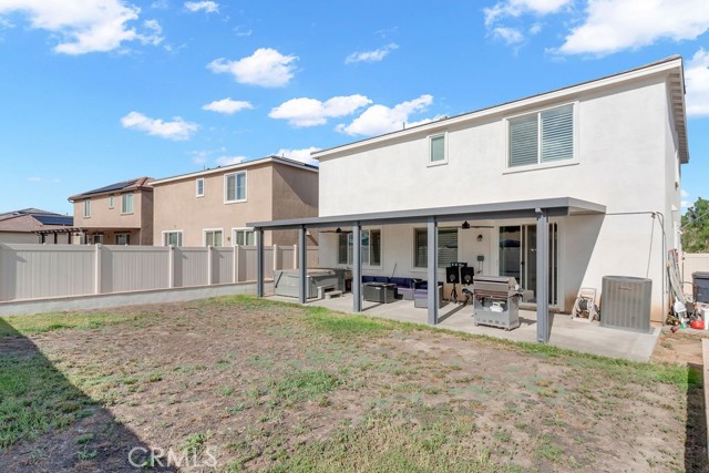 Step into modern comfort with this stunning Moreno Valley home offering 5 bedrooms, 3 bathrooms, a loft, and a private den/office—all within nearly 2,950 sq. ft. of thoughtfully designed living space. Built in 2021, the open-concept floor plan is perfect for gathering with loved ones, hosting celebrations, or simply enjoying everyday life. The spacious kitchen opens seamlessly to the living and dining areas, while the versatile loft and den give you room to work, play, or unwind. Outside, the finished backyard with a covered patio, cement slab, and planter is ideal for barbecues, summer nights, and creating lasting memories. This home blends modern style with everyday functionality, making it the perfect place to grow, entertain, and call your own.