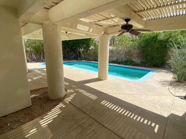 Private 3BR/2BA corner-lot home with 1,900+ sf on 8,200+ sf lot. Open floor plan with vaulted ceilings, travertine floors, large windows, and partial mountain/valley views. Kitchen with oversized island opens to flexible-use room and patio. Primary suite with walk-in closet and large bath. Sliders throughout lead to pool, spa, and outdoor shower. 2-car garage. Convenient to Palm Springs, Cathedral City civic center, casino, shops & restaurants. Gorgeous sunsets in the sought-after village feel of Cathedral City Cove!Additional pics coming soon!