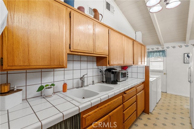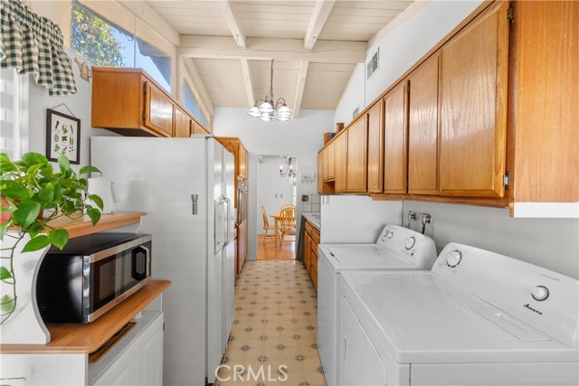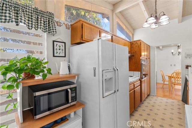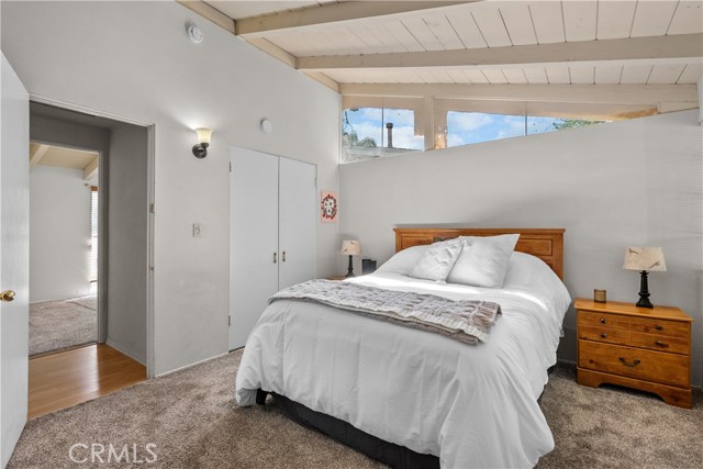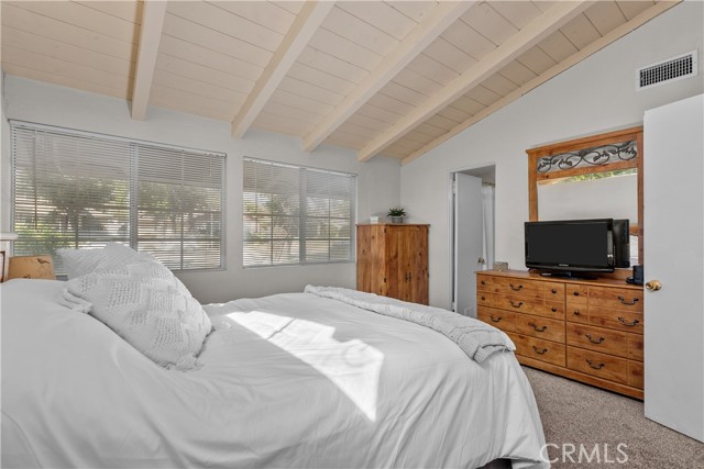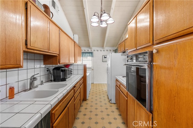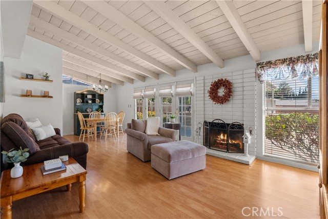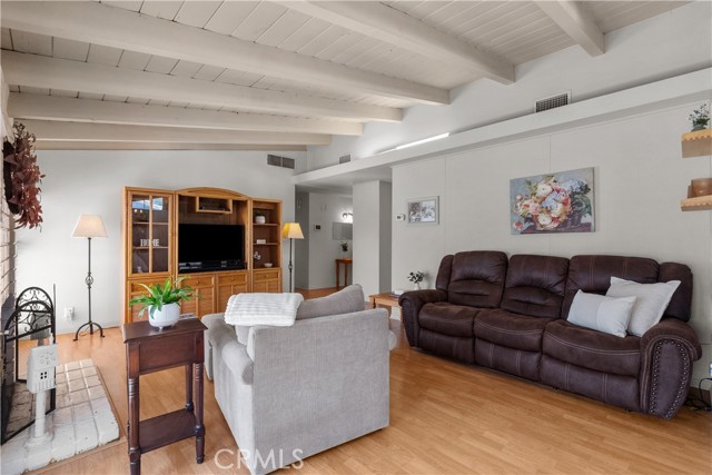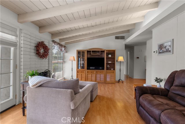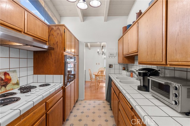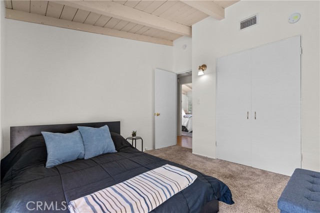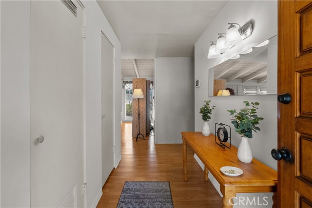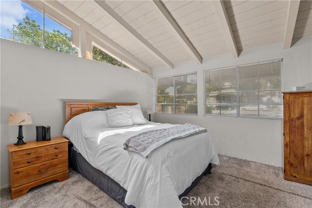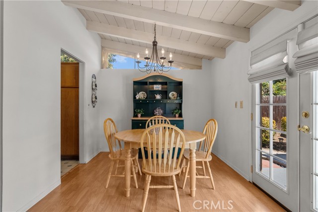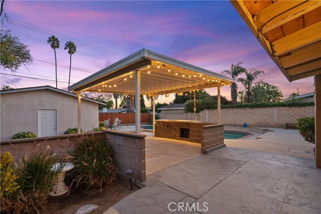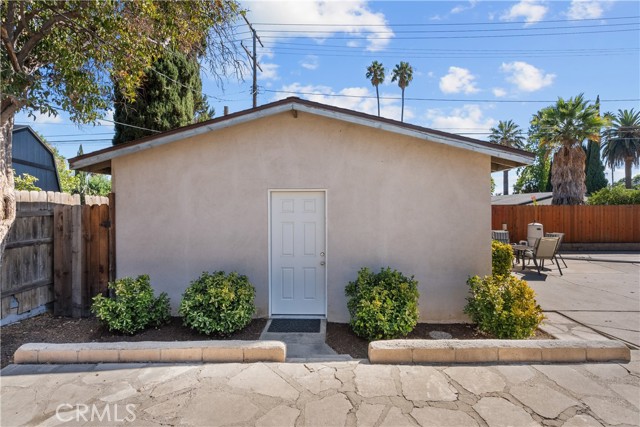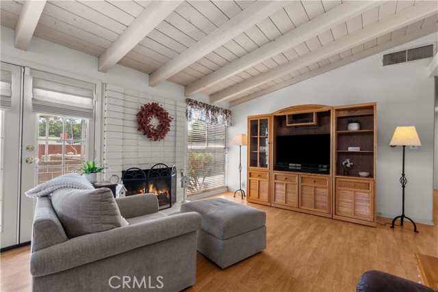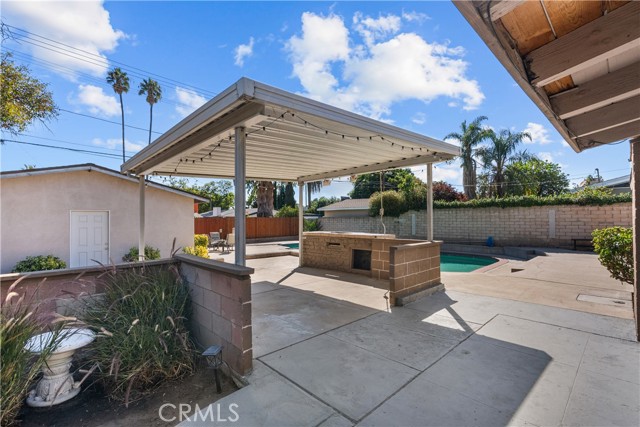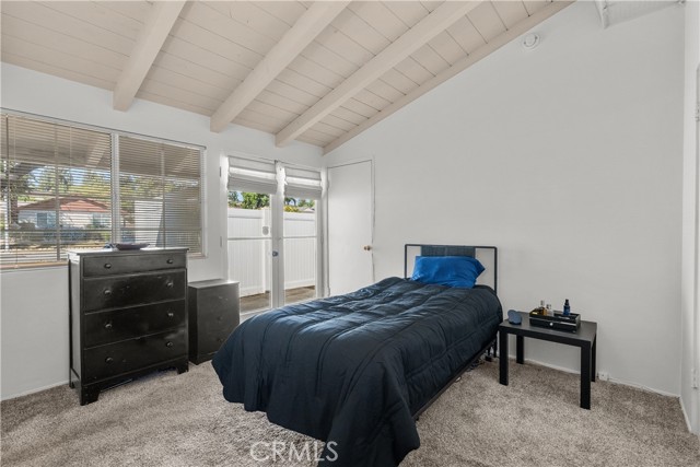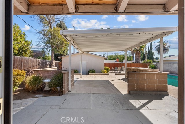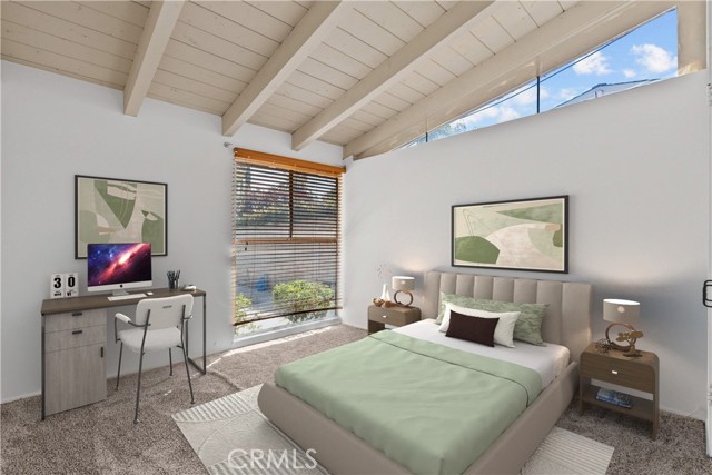 Welcome to this charming Palmer and Krisel mid-century modern, located in the highly sought-after North Hills West neighborhood. Blending timeless architectural appeal with modern updates, this four-bedroom, two-bathroom residence offers 1,344 square feet of bright, open living space—perfect for both everyday comfort and effortless entertaining. Upon entry, you're greeted by a light-filled foyer that opens into expansive common living and dining areas. Signature vaulted wood-beam ceilings, abundant natural light, a cozy wood-burning fireplace, and French doors create a warm and inviting atmosphere. Oversized sunlit windows offer views of the private backyard and sparkling swimming pool, beautifully merging indoor and outdoor living. The spacious primary bedroom features vaulted ceilings, ample closet space, and an en-suite bathroom with a tiled shower-over-tub combination. Three additional bright and generously sized bedrooms—each with vaulted ceilings and ample closet space—share access to a full bathroom and a separate three-quarter bath with a tiled stall shower and vanity. One of the bedrooms includes private access to the front courtyard, making it an ideal space for guests, an in-law suite, or a dedicated home office. At the heart of the home lies the well-appointed cook’s kitchen, featuring classic tile countertops, an electric oven and range, generous cabinetry, vaulted ceilings, and a convenient indoor laundry area. Just off the kitchen, the dining room provides an ideal space for everything from casual family breakfasts to formal gatherings. Step outside through French doors and into your private backyard retreat. A refreshing swimming pool, spacious patio, and large covered area create the perfect setting for morning coffee, weekend BBQs, or evening relaxation. The detached garage with alley access and a spacious backyard offer exciting potential for an ADU (Accessory Dwelling Unit).The home has been thoughtfully updated with a composition roof, updated central air and heat system (2022), mostly copper plumbing, select windows are dual-pane, a 200-amp modern electrical panel, and an owned energy-efficient solar power system, providing long-term utility savings and peace of mind. Located just minutes from CSUN, schools, shopping, dining, major freeways, and local entertainment, this home delivers the perfect balance of mid-century style, modern comfort, and everyday convenience. (Some photos may have been virtually staged.)