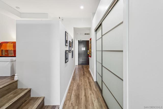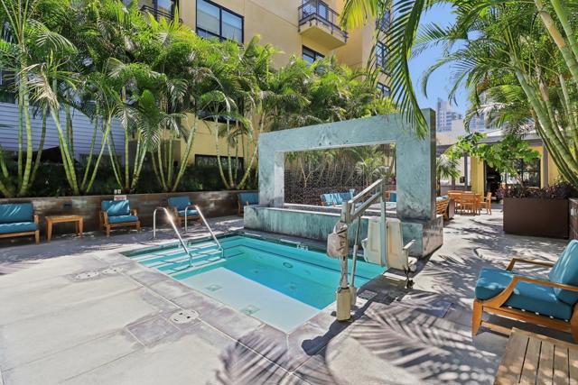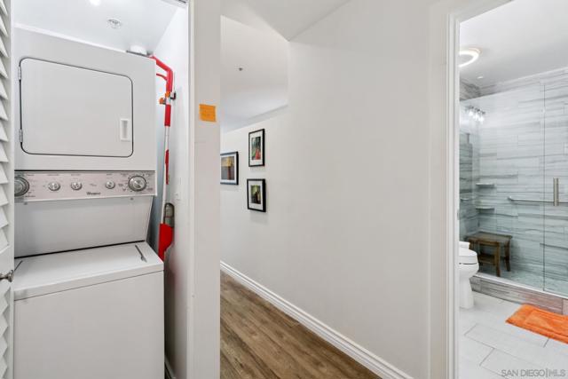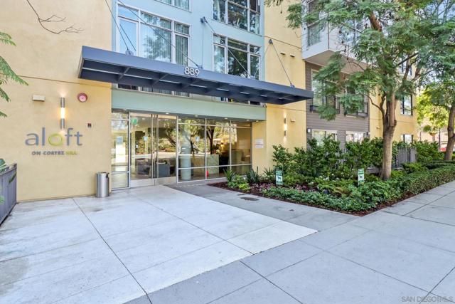 Fully upgraded studio that lives like a 1BR in the highly desirable Aloft Condominiums at Cortez Hill. This thoughtfully designed home offers a spacious feel with an open floor plan and a sliding glass door that fills the space with natural light while opening to peaceful west-facing views of mature greenery. The unit features modern upgrades throughout, central AC, and the convenience of an in-unit washer and dryer. Aloft residents enjoy resort-style amenities including a pool, spa, fitness center, front desk concierge, and secure underground garage parking. Nestled in a quiet pocket of Cortez Hill next to a small neighborhood park, the building offers a tranquil retreat while still being within walking distance to Little Italy, Balboa Park, the Gaslamp Quarter, and East Village. Ideal for first-time buyers, investors, or those seeking a modern urban retreat, this home combines comfort, convenience, and location in one of San Diego’s most connected neighborhoods.