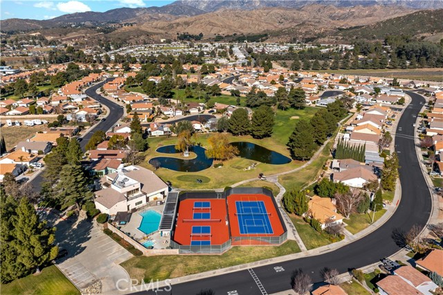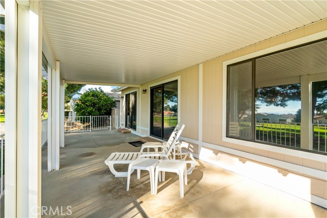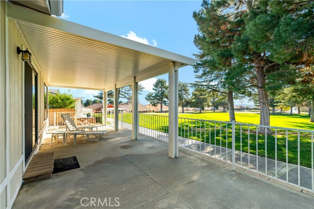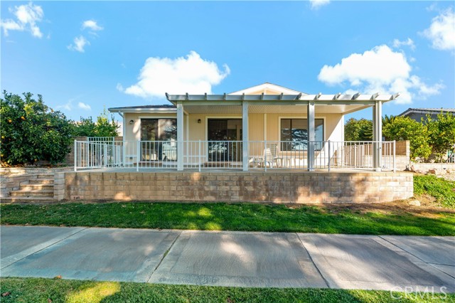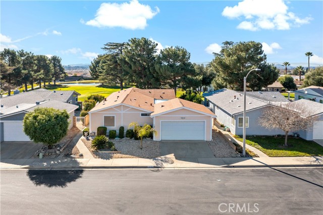 Welcome to Highland Springs Country Club. This is an active 55+ GATED Community. The amenities include, FREE GOLF for residents and up to 5 of their friends can also play for FREE!! UNLIMITED FREE GOLF! In addition there are pickleball courts, tennis courts, a large clubhouse, pools, spas, and exercise area to name a few. This home is located right on the green! Your covered alumawood patio faces hole 1 on the golf course! If you are a golfer, look no more! Recently renovated with neutral carpet throughout,neutral paint throughout, freshly painted kitchen cabinets, with a water purifying system under sink, a new roof, new sewer line, new exterior paint, tons of windows with lots of natural light, view of the golf course, mountains, and water fountain near the clubhouse! This home has beautiful open lay out, large side yard with a covered alumawood patio, an orange and lemon tree! Lots of room to entertain, and BBQ on those warm summer nights! Guest bedroom has a sliding glass door that opens up to the patio. There is a 2 car garage, with a water softener, washer, dryer and fridge are included. Don't miss this opportunity to enjoy an active lifestyle in a great active adult community.. You own your own land here, no space rent. This home is on a permanent foundation!