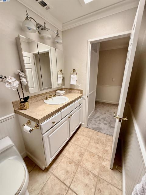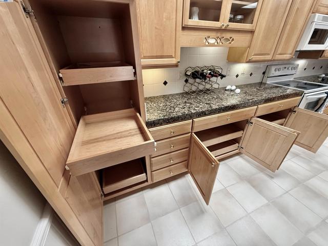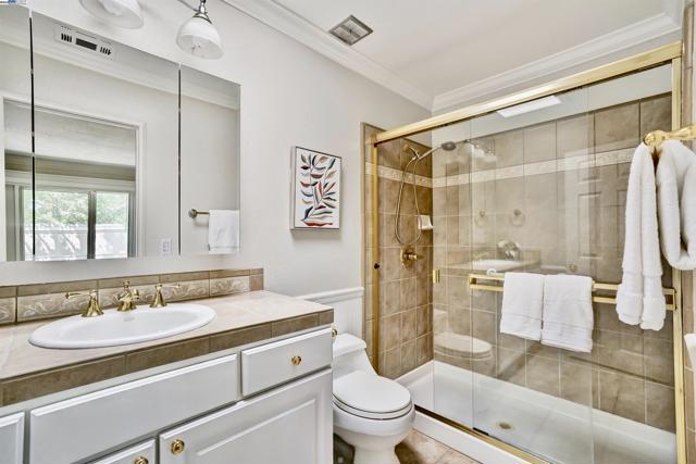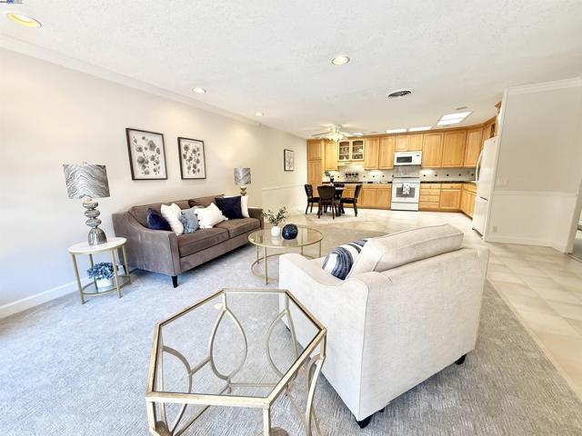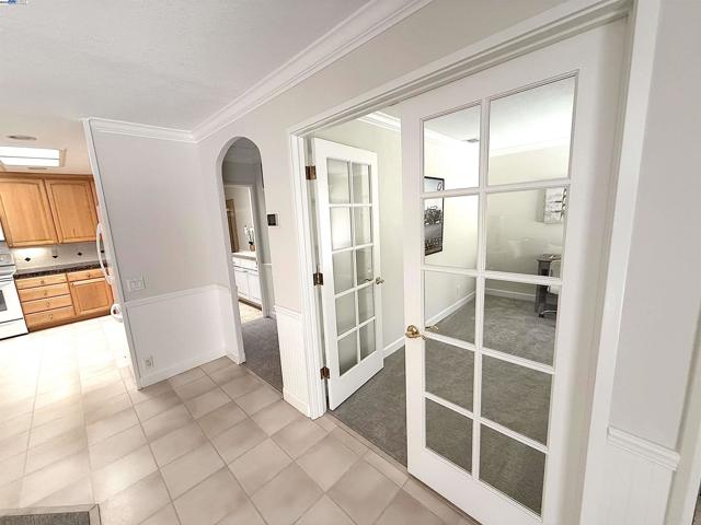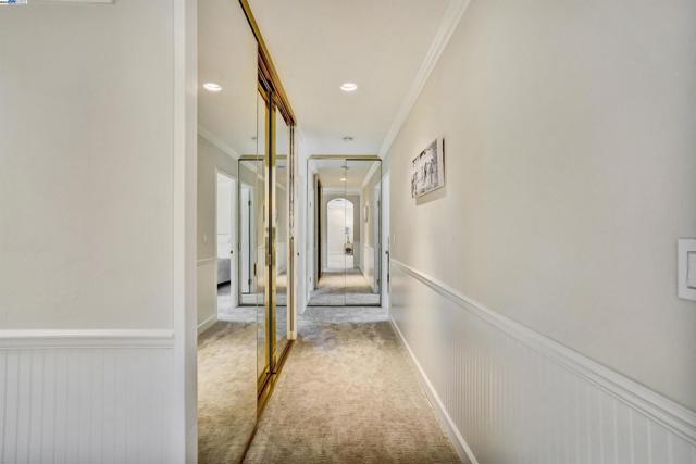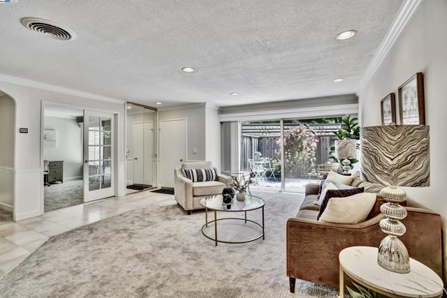 Beautifully remodeled - private location tucked away from the street. No steps from parking to the front door. Primary bathroom has convenient step-in stall shower. Custom open kitchen layout, light & bright, provides abundant cabinetry & cooking ease. Crown molding & wainscoting. Den/office has French doors perfect for guestroom or enclosed office. Bright and open, this move-in condition home is located in the scenic hills of amenity-rich Rossmoor with a lovely private patio - surrounded by mature landscaping that is maintained by the HOA. New upgraded carpeting and fresh interior paint. Newer HVAC system. Lots of closet space with quality shelving organizers. Skylights & recessed lighting throughout this home bring all the light in. Best of all enjoy the world-class Rossmoor amenities.