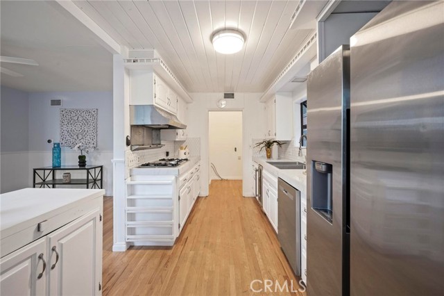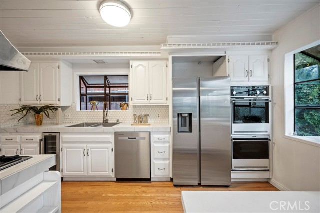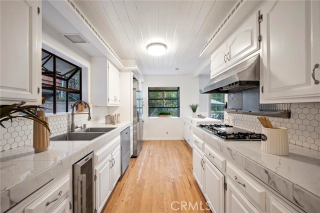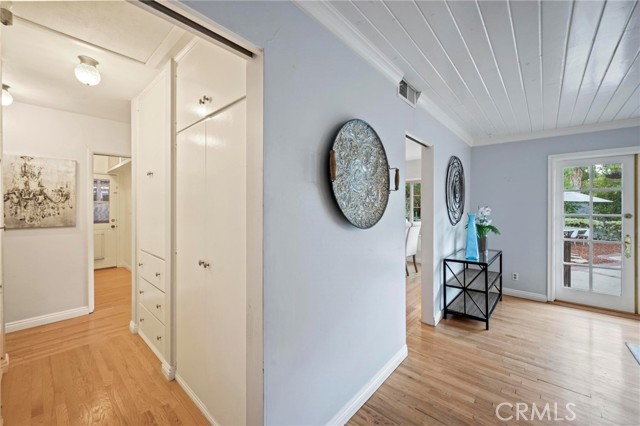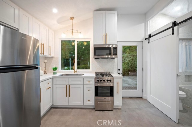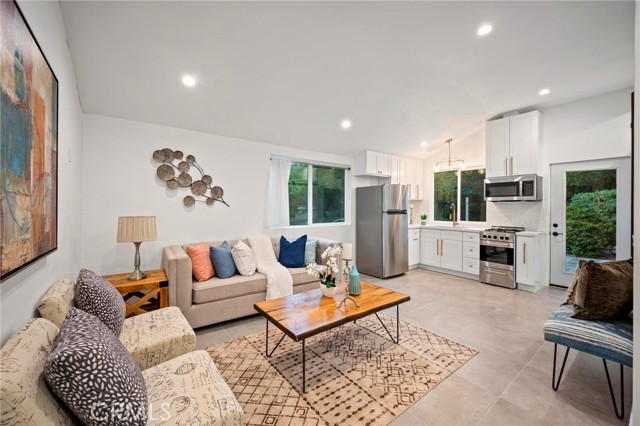 RUN! to this beautifully updated gem nestled in the heart of Woodland Hills! South of the Boulevard on a quiet street in a charming neighborhood close to everything, with efficiency galore that includes solar panels with $36/month lease payments!, a TESLA charging port, and income potential or extra living space with a gorgeous ADU. The stunning home is bathed in natural light, flows with hardwood floors, and efficiently offers pull-out kitchen shelving, large closets, and extra storage. A combination of high-end updates and classic mid-century roots enhances the home’s charm and coziness. The front brick courtyard is enchanting, and the graceful flow includes a wall of French doors in the living room that open to a spacious backyard with room for play, relaxation, and entertainment. An easy walk to parks, school, and Trader Joe’s, and wonderful neighbors all around. This is a lovely place to call home!