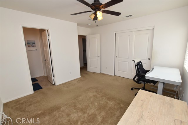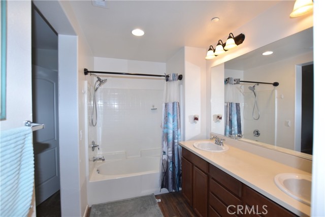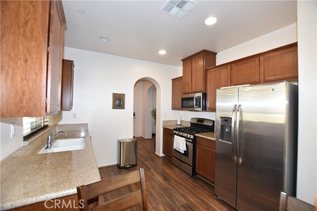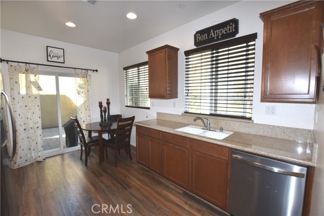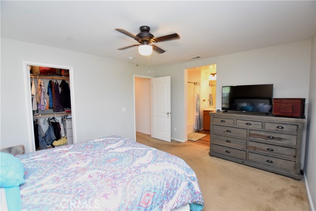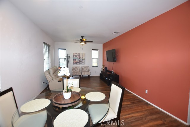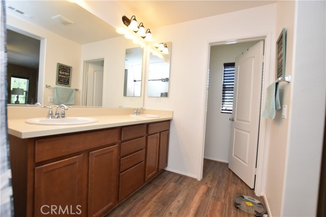Hard to find well maintained, detached end unit positioned near the community park and pool with two en-suites bedrooms. This charming home in the Paseos at Crown Valley home has 1,363 square feet of well designed living space with 2-bedrooms and 2.5-bathrooms. There is upgraded laminate flooring throughout the first level and the eat-in kitchen features stainless steel appliances, granite countertops, and a pantry. The living/dining room has lots of windows and a fan and there is a guest bathroom off the entryway. Upstairs showcases a spacious primary suite with bathroom and walk-in closet, along with a secondary en-suite bedroom and a roomy laundry room. There are ceiling fans in every room for comfort and lower electric bills. The attached two-car garage, includes interior access to the home and a secondary door leading directly to a private brick patio. The well maintained community sports many amenities including a pool, spa, tennis courts, playground, and sports field. Conveniently located near parks, dog parks, schools, and commuter routes, this home offers a practical layout, modern finishes, and excellent value. Nearby is the Crown Valley park has basketball and tennis courts, a playground, and a baseball field along with a HOA fee. The home is also conveniently located close to the Murrieta Hot Springs, numerous Wineries and Wine Tasting venues, Lake Skinner and shopping and dining, highway 79 and the 15 freeway.