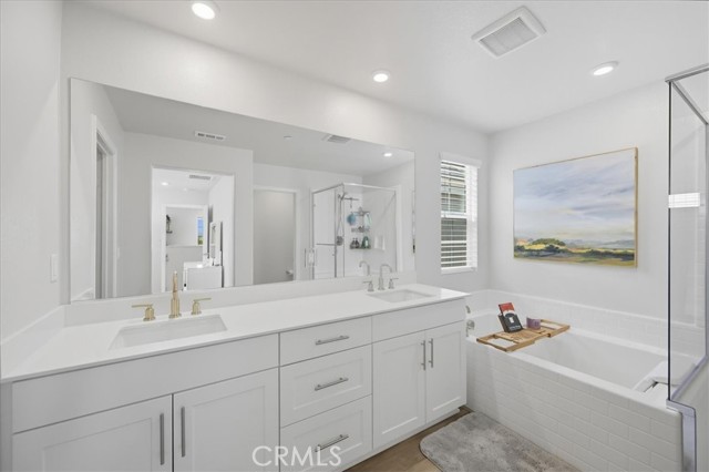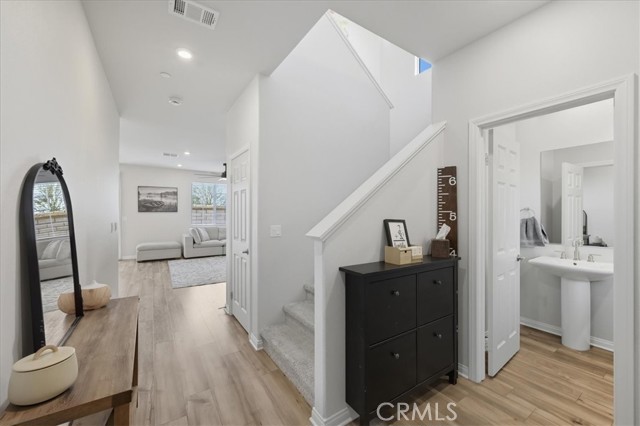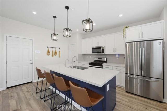 First Time on the Market & Turn-Key Ready! Welcome to 26960 Red Dr, located in the highly desired community of The Village in Menifee. This stunning detached two-story condo lives like a single-family home and is one of the few in the neighborhood that offers both a long driveway and a larger backyard—a rare find! Featuring 3 bedrooms, 2.5 bathrooms, and 2,021 sq. ft. of living space, this home also boasts two versatile lofts—one that can easily be converted into a 4th bedroom, and the other ideal for an office, study, or playroom. Step inside and you’ll be greeted by an inviting open-concept floor plan. A long foyer leads to the expansive living room and a well-appointed kitchen with quartz countertops, stylish backsplash, pendant lighting, and a large center island, perfect for entertaining and everyday living. Upgrades include: • Paid-off solar • Pre-wired for electric vehicle charging • Luxury vinyl plank flooring & plush carpet • Satin paint in some areas of the home • Whole-home water filtration system + alkaline drinking filter in kitchen • Ceiling fan in living room • Added electrical outlet & wiring behind TV wall • Epoxy flooring in 2-car garage Outdoor Features: • Stamped cement, grass, cement borders, drip system & programmable sprinklers • Gas & water lines routed for a future built-in BBQ • Fruit trees: lemon, lime, and nectarine (newly planted) Community Amenities: • Sparkling pool & park • HOA only $193/month Perfectly located near the 215 freeway, shopping, dining, and schools, this home is move-in ready and waiting for its new owners!