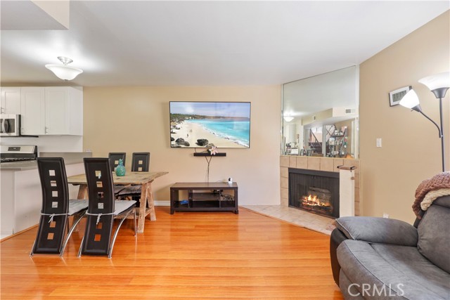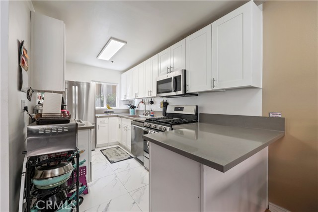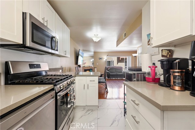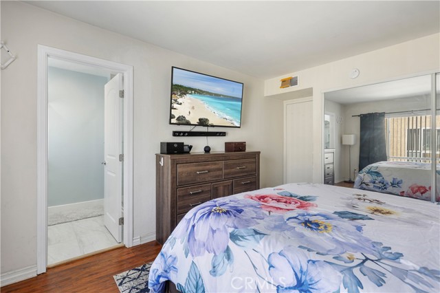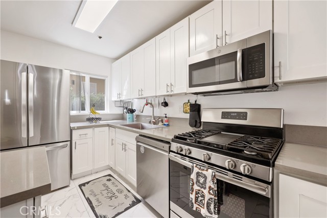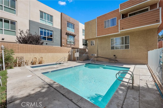 Welcome home to your very own townhome located in the heart of Van Nuys within a private gated community that feels safe and secluded. Pull right into your spacious two car garage with direct access and walk up to the first floor which has your bright living room with large sliding glass doors, a cozy corner fireplace and an open concept dining room and kitchen. The kitchen has all stainless steel appliances and bar seating with modern quartz countertops. Adjacent to the living room is a powder room for your guests. On the second floor, you'll find both bedrooms to be spacious and bright. The primary bedroom has a gorgeous newly remodeled bathroom with a sleek shower glass door enclosure, sitting bench and modern large format tiles. An affordable HOA and a sparkling blue swimming pool, also offering a bonus 3rd parking space for this unit! Located in the San Fernando Valley within minutes of the major 5 and 405 highways. Come see for yourself and welcome home!