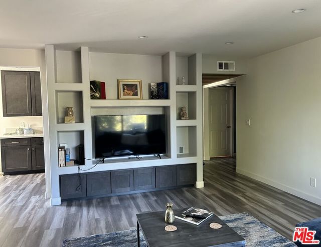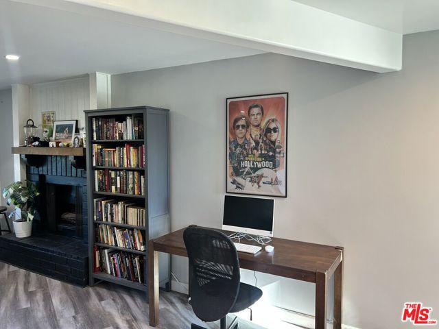 Stylish new flooring flows into an updated kitchen featuring quartz countertops, soft-close cabinetry, and stainless-steel appliances. The inviting living room includes a cozy gas fireplace and a built-in entertainment center. The bathroom offers a modern vanity with hidden plug access, while the bedroom is complete with a spacious walk-in closet. Recessed lighting has been recently added throughout, and the home is equipped with central heat and air. Each floor of the building, including the ground level, provides a laundry room with free washer and dryer access. Additional highlights include two covered tandem parking spots and a shared outdoor recreation area with a barbecue grill. This quiet, well-kept 14-unit complex is just a short stroll to the trendy shops and dining of Tujunga Village.