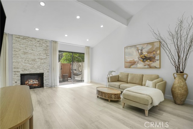 Rare Updated End-Unit Townhouse in Woodland Hills with Vaulted Ceilings and direct Garage access. This charming 2-bedroom, 2 Full bathroom townhouse offers 1,054 sq ft of living space with vaulted ceilings and recent upgrades. Features include a remodeled master bathroom, remodeled kitchen and guest bathroom. There is a fireplace in the living room, walk-in closet in the primary bedroom, and an extended large private patio. Attached 2-car garage with Direct Access to the unit with washer and dryer, plus community amenities like a pool, spa, and tennis courts. WARNER WOODLANDS TWO COMMUNITY- Conveniently located near Topanga Mall, The Village, and the 101 Freeway.