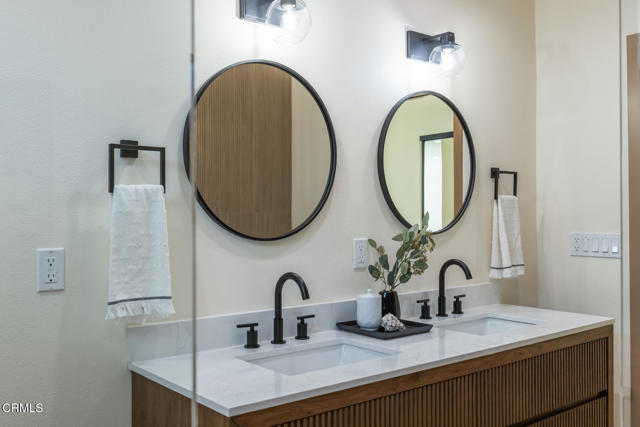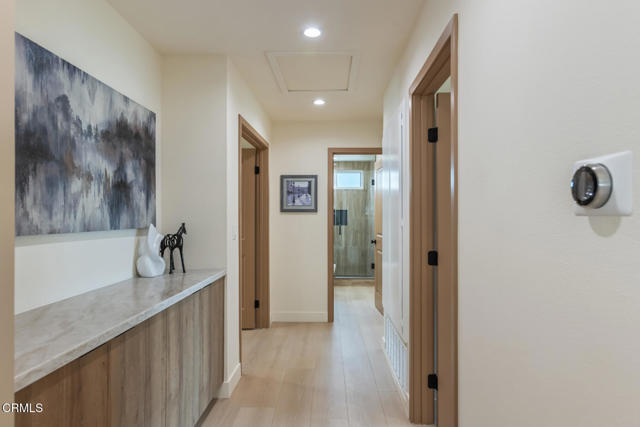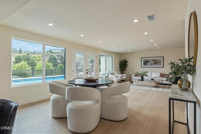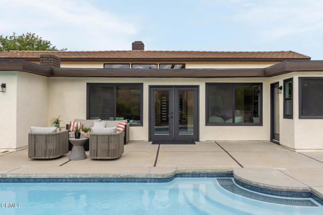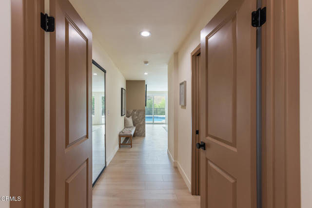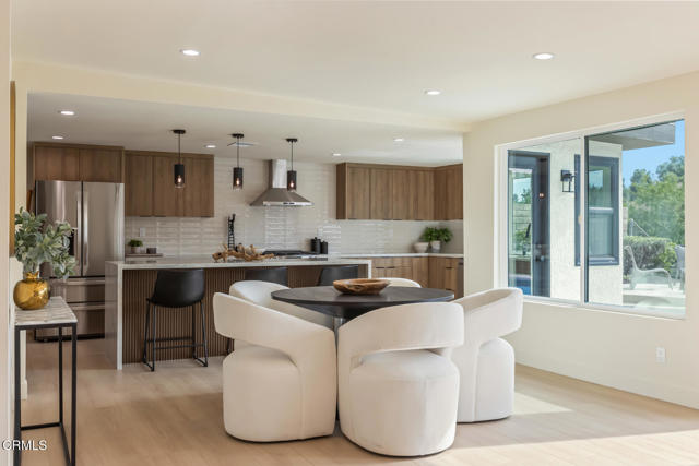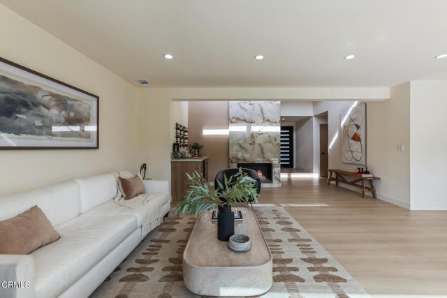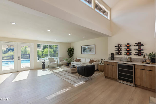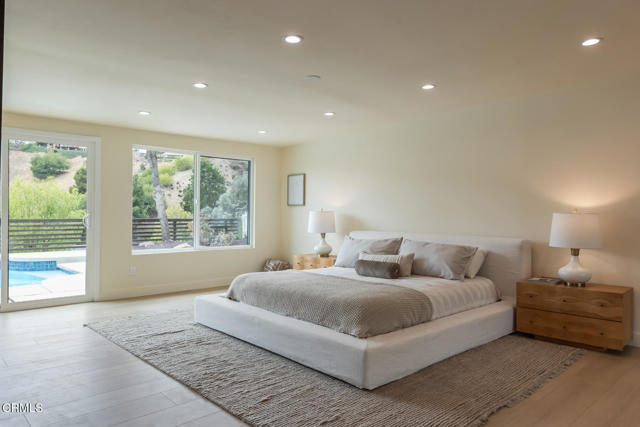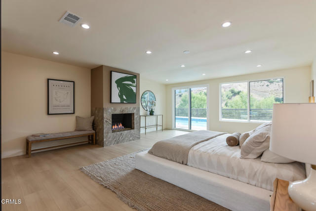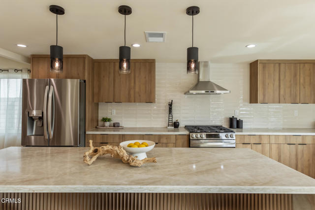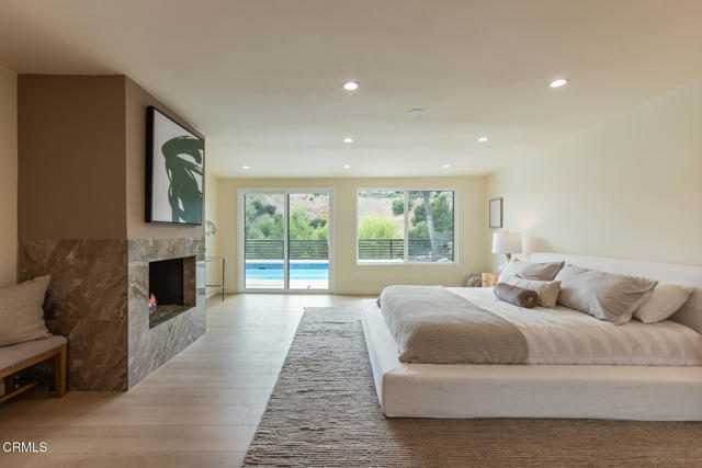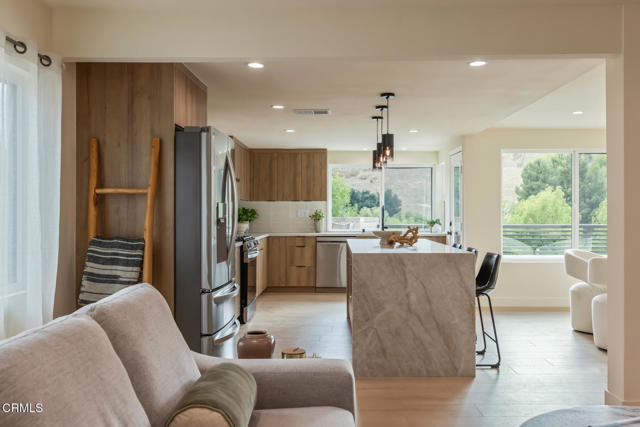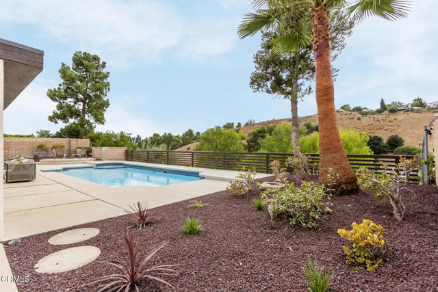 Welcome to this stunning single-story home in the highly desirable Porter Ranch community, offering 3 bedrooms, 2 bathrooms, a sparkling pool and spa, and breathtaking canyon views. Perfectly situated within the award-winning Castlebay Lane Elementary and Granada Hills Charter school districts, the property is just minutes from local parks, hiking trails, The Vineyards at Porter Ranch, and convenient freeway access. Extensively renovated, the home features a brand-new kitchen with modern cabinetry, Taj Mahal quartzite countertops and backsplash, a waterfall island with pendant lighting, state-of-the-art LG appliances, and a built-in bar with beverage/wine refrigerator. Both bathrooms have been beautifully updated with new showers, vanities, toilets, fixtures, and lighting, while the primary suite includes a new soaking tub. Additional upgrades include new laminate flooring throughout, designer-tiled fireplaces in the living room and primary suite, recessed lighting with smart switches, new windows and doors, fresh interior and exterior paint, a new entry and garage door, a new flat roof section, and LG washer and dryer. The backyard is an entertainer's dream with a resurfaced and retiled pool, new pool equipment, upgraded fencing and gates, fresh concrete work, and new landscaping with irrigation. This move-in ready residence combines modern luxury with everyday comfort in one of Porter Ranch's most sought-after neighborhoods.