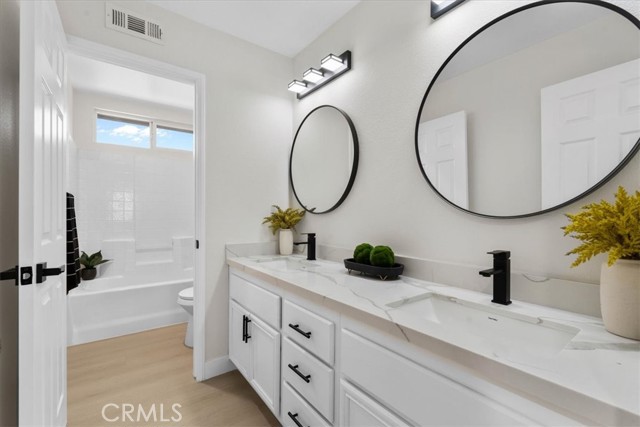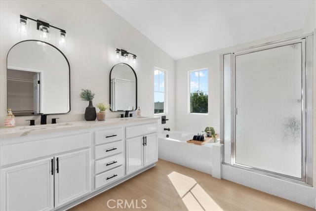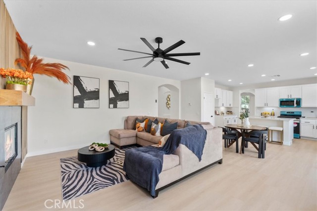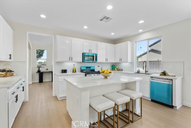 Welcome to this BEAUTIFULLY REMODELED and UPGRADED home you’ve been waiting for! With NEW laminate flooring, NEW baseboards, NEW recessed lighting, NEW stainless steel appliances, NEW quartz countertops, NEW interior paint, NEW modern ceiling fans, a NEW family room accent wall, NEW fireplace tiles and a mantel ready for the holidays. Bathrooms have been tastefully remodeled with NEW quartz countertops and NEW modern finishes, while the primary suite feels like a retreat with its vaulted ceilings, dual walk-in closets, spa-like soaking tub, step-in shower, and dual vanities. Need extra space? The BONUS LOFT is perfect as an additional bedroom, entertainment zone, or private home office. Downstairs, a convenient first-floor bedroom and full bath make hosting guests or MULTIGENERATIONAL LIVING a breeze. Sitting proudly on a large CORNER LOT, the property offers endless potential—add a POOL for summer fun or even an ADU for extra income or extended family. That's not all, the 3-CAR GARAGE provides plenty of space for cars, storage, or your next workshop project. All of this in a prime location near the 60 and 215 freeways, close to shopping, dining, and everything Moreno Valley has to offer. This move-in ready home truly has it all—modern style, functional design, cozy holiday vibes, and room to grow. Don’t miss your chance to make it yours!