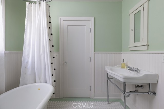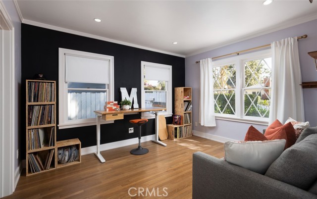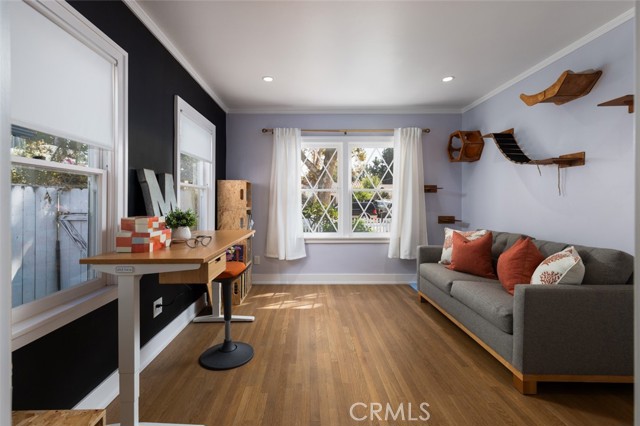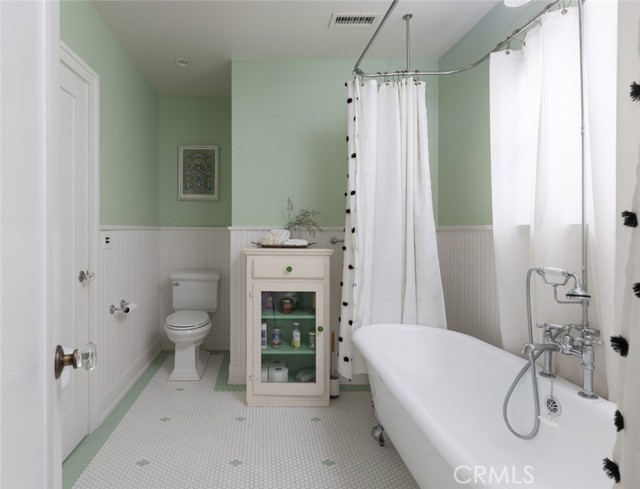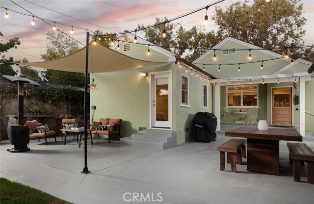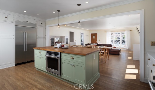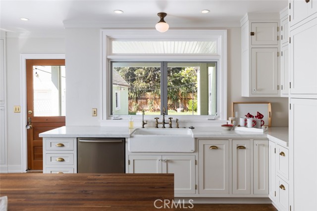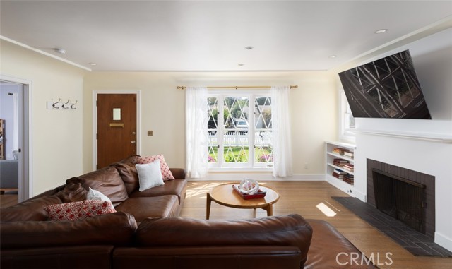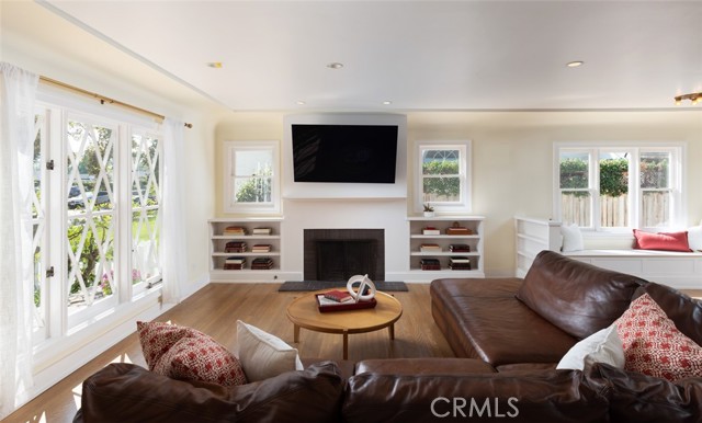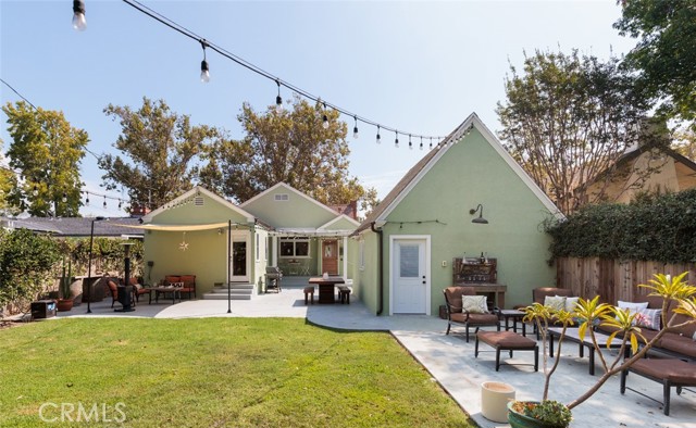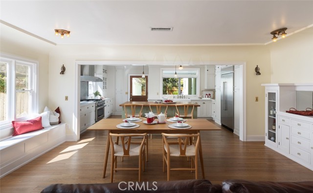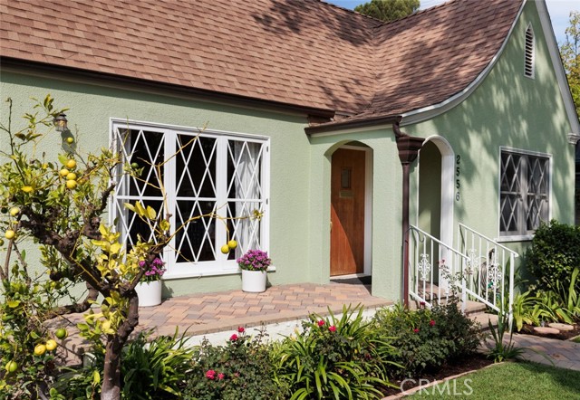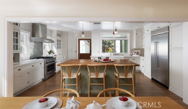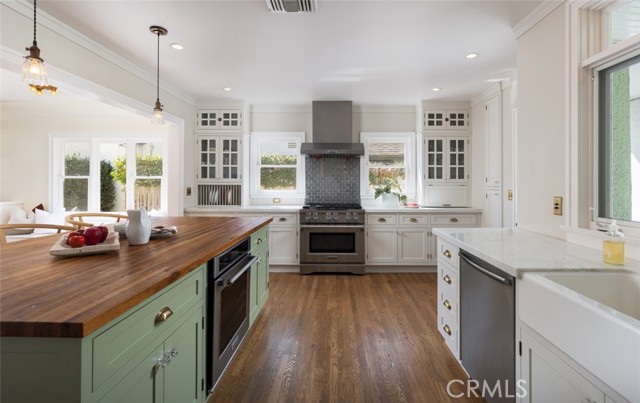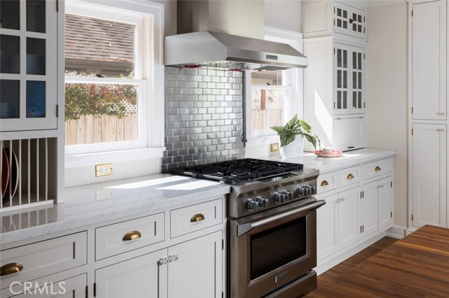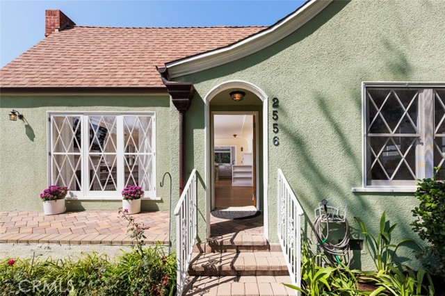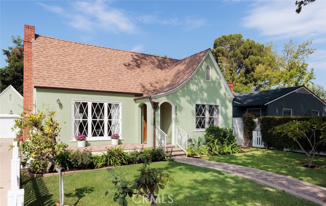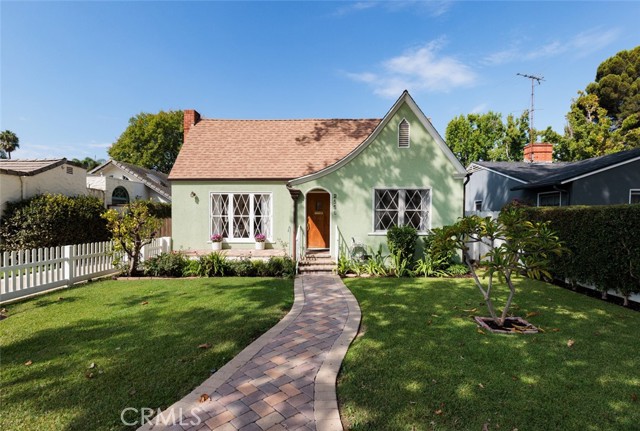 Fabulous Historic Tudor "The Enlow House" in the delightful Park Santiago neighborhood, approved for Mills Act for huge tax savings! Discover this stunning vintage gem where historic charm has been beautifully renovated to seamlessly blend the original character with contemporary and open concept Scandinavian-inspired design featuring clean lines, all with a phenomenal eye to detail. Striking, vintage, diamond-mullioned windows bathe the front interior in natural light. The living and dining rooms have been thoughtfully opened up to create a modern, airy feel while preserving the home's character—perfect for today's lifestyle. The heart of the home is the gourmet kitchen featuring vintage-style cabinets with soft-close drawers and elegant crystal knobs. With more cabinetry than you'll know what to do with, kitchen storage will never be an issue! Premium KitchenAid appliances include a six-burner stainless steel range with matching hood, complemented by a sophisticated stainless steel subway tile backsplash, a second oven, and an oversized built-in refrigerator. A large island has butcher block counters, ample storage, electrical, and seating area for enjoying your time with the chef. The charming Dutch door and large kitchen window above the sink frame a beautiful view creating a perfect connection between indoor and outdoor living. Three bedrooms include a primary suite with a French door opening to the backyard retreat. Two remodeled bathrooms have classic wainscoting and hexagonal tile floors, one featuring dual faucets and an oversized shower, and the other has a pedestal sink and a clawfoot tub. Extensive upgrades include seller-owned solar panels and updated electrical, plumbing, and sewer line ensuring modern comfort and efficiency. Gorgeous oak hardwood floors create a flowing, cohesive look. New double-hung wood windows with screens throughout most the house bring cool breezes across the home. The peaceful backyard is a charming retreat with multiple patios, mature fruit trees including citrus and fig varieties, plus plentiful grass. Flowering plants create a wonderful garden oasis perfect for relaxing or dining al fresco. Nestled in a neighborhood full of vintage homes with a strong sense of community, enjoy the convenience of walking to Mother's Market and local restaurants with Santiago Park and the Lawn Bowling Center just a few houses away! This is more than a home—it's a lifestyle in one of the area's most desirable historic neighborhoods.