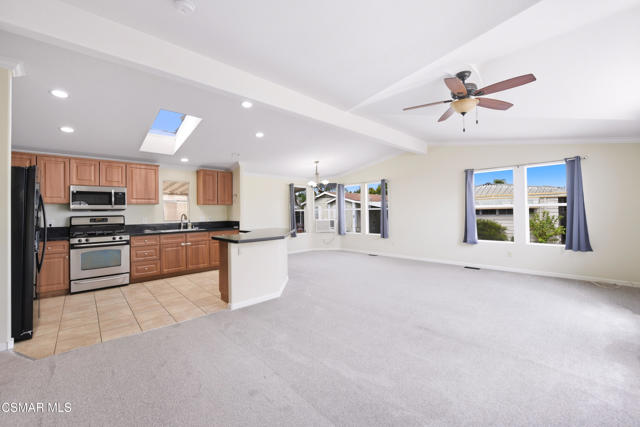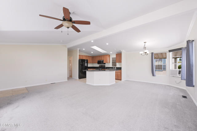 Very Sharp Manufactured Home in the Lamplighter Mobile Home Park in Camarillo. 2 bedrooms, 2 baths with a bonus room which could easily be a 3rd bedroom. Over 1,300 sq ft of living area, fresh interior paint and new carpet. Open floorplan with a large living room, vaulted ceilings, formal dining area, spacious kitchen with granite counter, stainless steel appliances and a breakfast bar. Other features include a large master bedroom and master bath with walk-in-shower. Great location in the park, only a couple of blocks from the community pool and clubhouse. The covered carport/driveway will accomodate 2 cars and there is a large storage shed with electicity and small freezer.