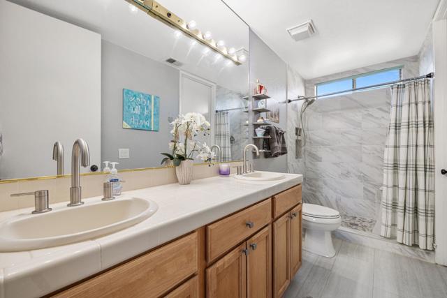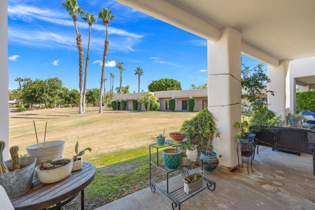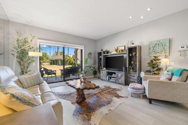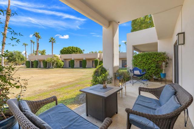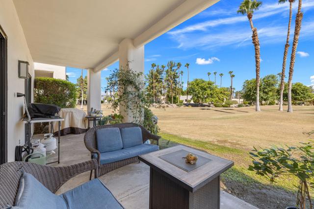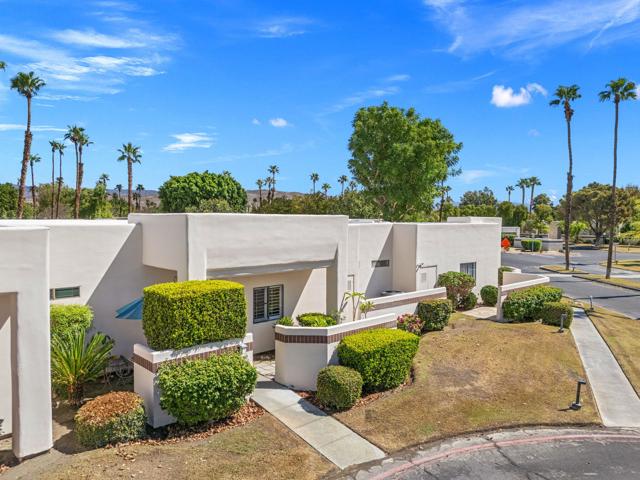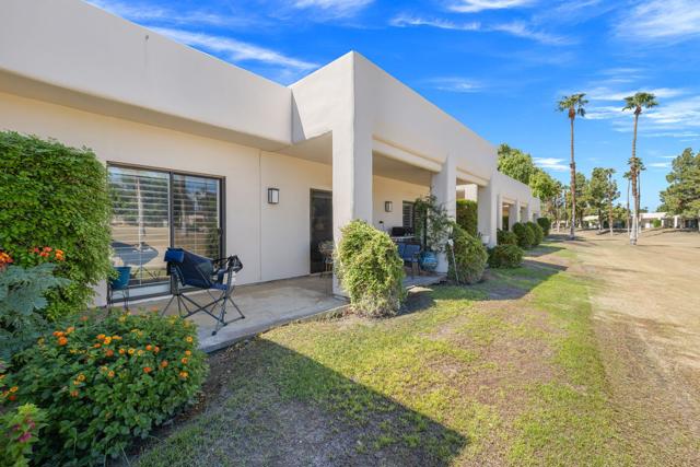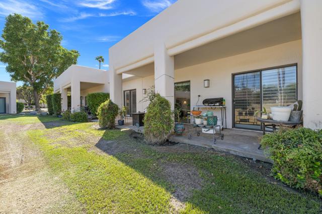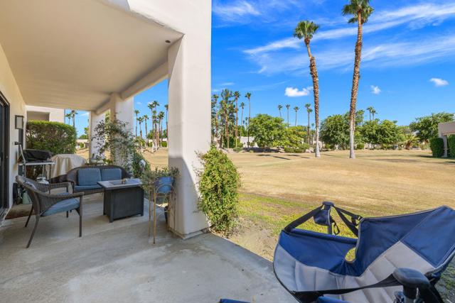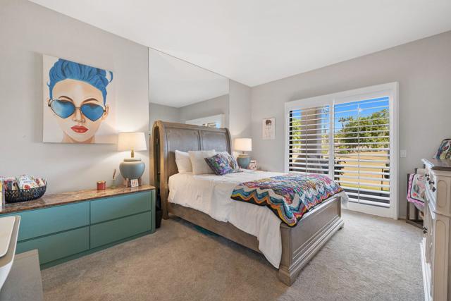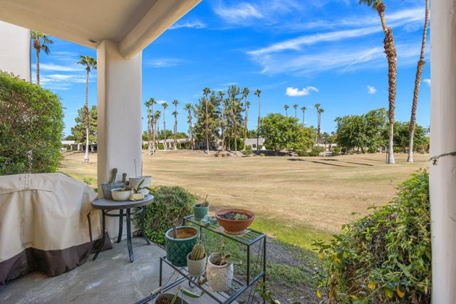 Highly sought after Alameda model at a great price! This condo has 2 primary suites and is a 2 bed / 2 bath unit with golf course view. Very light & bright with tall ceilings and newer laminate flooring in kitchen & living area. The kitchen has newer Stainless Steel appliances & a Farmhouse sink. There is a nice breakfast bar for additional seating. The living area is spacious and has great views of the golf course. The Bedrooms are both en-suite and very spacious with plantation shutters, and they have sliding glass doors that lead out to the huge covered back patio. The bathrooms have been beautifully remodeled with walk in marble showers, double vanity sinks & large walk in closets with built in shelving. There is a large stack-able washer & dryer inside the Condo. You can relax and enjoy bbqing while taking in the beautiful sunsets on either of your patios. Lots of outdoor living space! There's is a detached one car garage for parking or extra storage. The pool is just steps away. You'll be located just a couple of minutes by golf car from the clubhouse as well as the tennis, fitness and spa facilities. Plus it's just a minute from the side gate making entrance and exit from the club quick and easy. Desert Princess has 33 heated pools, a 27 hole golf course, 9 tennis courts, pickleball, bocce ball, fitness center, spa and an updated Clubhouse. Desert Princess is located just minutes from Palm Springs airport and has no flyover noise. Additionally, it is typically less than 15 minutes from the downtown Palm Springs!