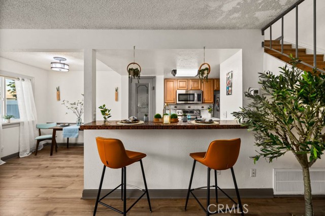 Welcome to Dot Street in the Bouquet Canyon Village nestled in the heart of Saugus, California. This charming home offers comfort, style, and a true sense of community. With the open floor downstairs with open exposed staircase it gives comfort of thoughtfully designed living space, it’s the perfect blend of some modern updates and neighborhood warmth. Inside, you’ll love the luxury vinyl plank flooring, giving the home a clean and contemporary feel. The updated stainless steel kitchen appliances make mealtime a delight, while the newly replaced HVAC system this September and upgraded electrical panel a few years back bring peace of mind for years to come. Step outside to your private patio retreat—complete with stylish patio furniture —the perfect spot to sip morning coffee or gather with friends under the stars. This neighborhood is friendly, walkable, and full of life—quiet enough to relax, yet never boring. Stroll to nearby favorites like sushi, Thai, Mexican, and pizza restaurants, or swing by Trader Joe's just a couple miles down. The shared community spaces are well maintained. Just down the street, you’ll discover Central Park—a local treasure that offers playgrounds, sports fields, hiking trails, and wide-open green spaces for picnics and play. All year long, it’s the heart of the community, hosting concerts in the park, seasonal festivals, and family-friendly events that bring neighbors together. Families will also appreciate the highly regarded Saugus Union School District, with Emblem Academy, Arroyo Seco Junior High, and Saugus High School all close by. Plus, you’re just minutes from additional parks, shopping, and commuter-friendly roadways. Whether you’re a first-time buyer, downsizing, or simply looking for a home that feels warm and welcoming, this home invites you to fall in love.