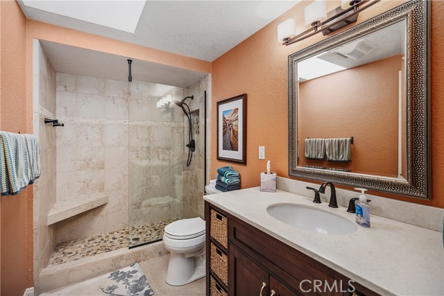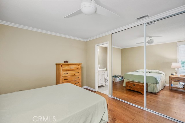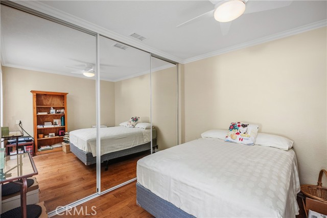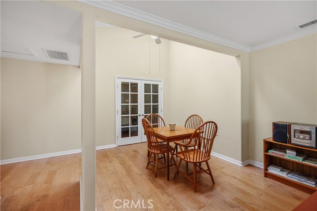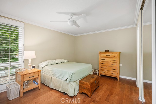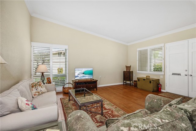 WONDERFUL REMODELED"GRANADA" MODEL WITH NO STAIRS, AND NO ONE ABOVE OR BELOW IN A PRIME LOCATION VERY CLOSE TO THE CARPORT. Charming single-level cottage curb appeal welcomes you through a double door entry and private front patio framed by mature landscaping. Inside, the living and dining rooms open up under vaulted ceilings, creating an airy and spacious feel. Engineered wood floors, crown molding, and upgraded dual-pane windows with plantation shutters create a warm and comfortable setting. The dining area (enclosed atrium) flows into a flexible second bedroom through French doors, perfect for guests or a cozy den. Both bedrooms feature mirrored closets and ceiling fans. Two nicely remodeled bathrooms feature tiled walk-in showers, one of which includes a bench and a pebble-style floor. Convenience is further enhanced with an interior stackable washer and dryer, as well as central heating and air conditioning. The bright kitchen offers abundant cabinetry and a peaceful garden view. Move in and enjoy the easy indoor outdoor lifestyle on your inviting front patio, all in a quiet spot near parking and pathways. Add all this to the amenities of Laguna Woods Village, and you have a winning combination. Enjoy the twenty seven hole championship golf course or the nine hole executive par three course, tennis, pickleball, paddle tennis, lawn bowling, two fitness centers, seven clubhouses, five swimming pools, an equestrian center, gardening opportunities, an art studio, a world class woodshop, over two hundred clubs and organizations, free bus transportation around the community and to nearby shopping, and convenient RV parking and storage—Country Club living at its best, just about six miles from beautiful Laguna Beach. The best hidden secret in Orange County awaits. SEE 3D TOUR AND SLIDE SHOW. Carport 548 Space 4