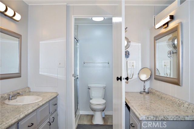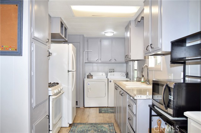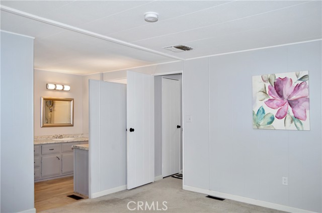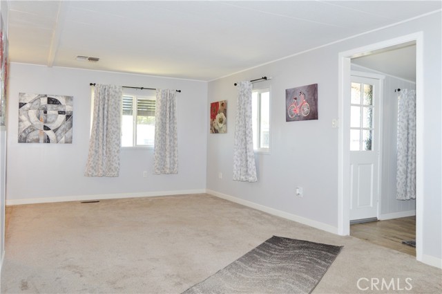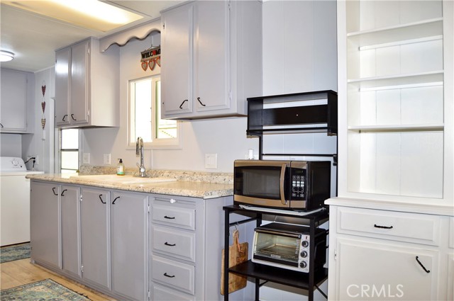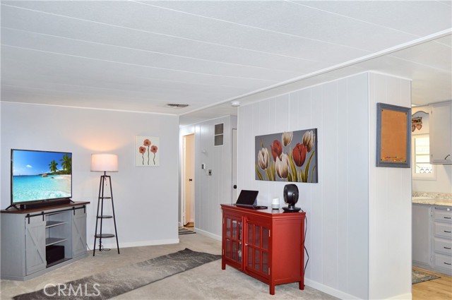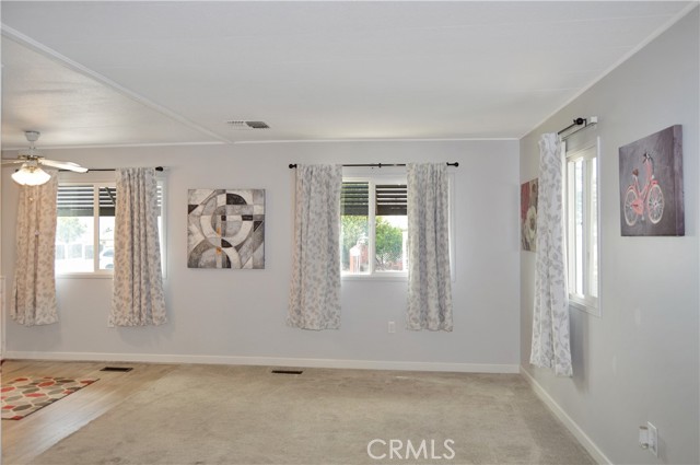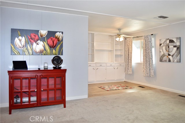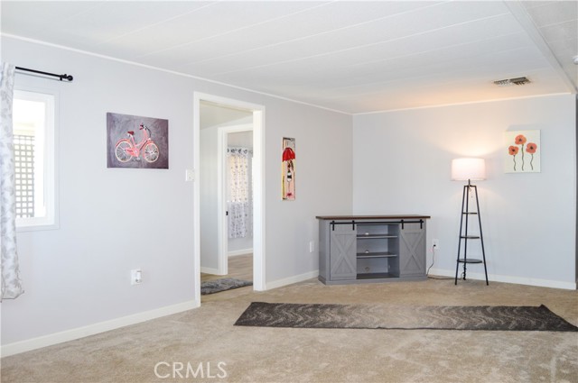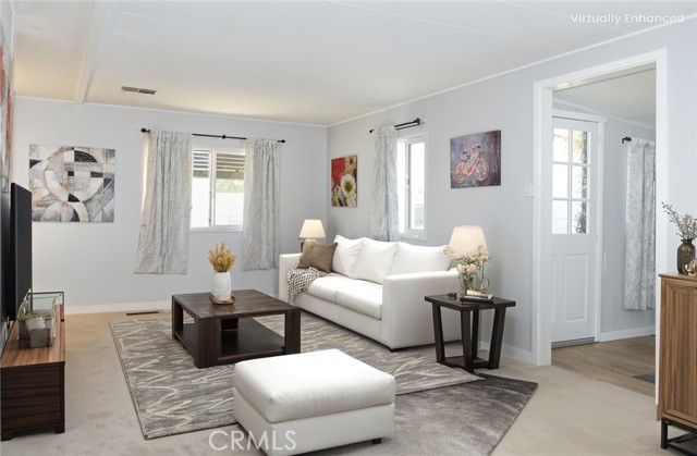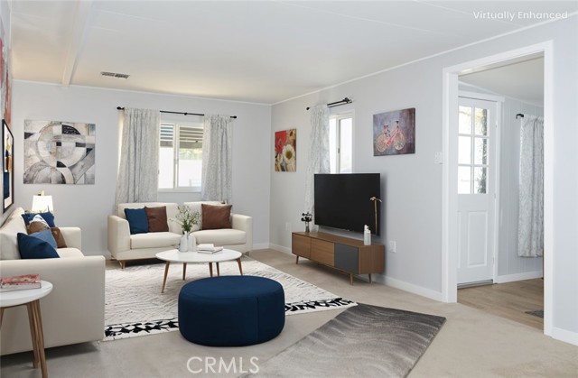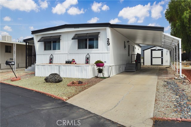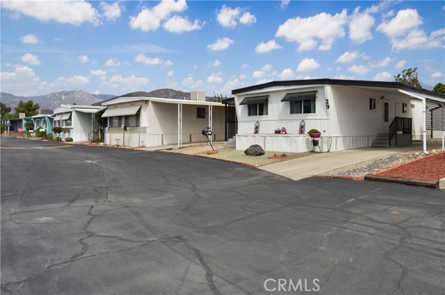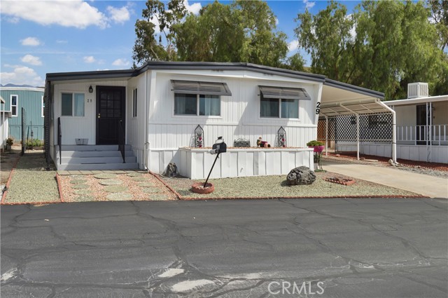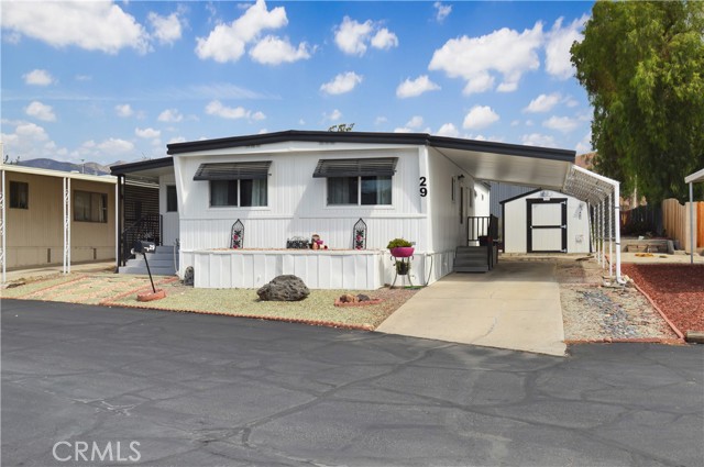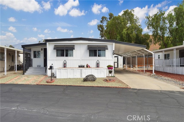 Welcome Home to 1255 Amethyst Ave., Space 29 in Carriage Isle Mobile Home Park in Mentone! This 55+ park is off of Hwy 38 near Redlands on the way to Big Bear with views of the mountains and trees but with all of the comforts of the city nearby. This home has been lovingly upgraded over the past 5 years so is move-in ready for the lucky new owner. Check out the photos and virtual tours to see the stylish paint inside and out, fabulous flooring, modern lighting, and attractive black door handles and hardware all combining to create a stylish home you are sure to love! This double-wide home offers a charming entry, spacious living room connected to the dining room and kitchen, 2 bedrooms, 2 baths, and a bonus room perfect for an office, family room, home gym, pet room, or even a spare bedroom. The main bedroom suite has a door leading to the garden out back, an en suite bath with a very generous amount of vanity space, privacy door to the shower and toilet room, and a nice-sized walk-in closet. The 2nd bedroom has a bathroom right across the hall. The kitchen opens to the dining room and includes a free-standing range, refrigerator, and microwave cart (with microwave) included. It's right next to the carport for easy re-stocking after grocery trips. The dining room offers sunset views and has a modernized built-in hutch for added storage. The washer and dryer in the laundry niche by the kitchen are included for your convenience. On those warm summer days, you have the option of using the central AC or the swamp cooler. Dual-paned windows help make it more efficient, too. Outside, the Tuff Shed is the perfect place to keep your tools and complete some projects. The yard offers a raised garden bed and an abundance of potted plants to enjoy. A 2-car tandem covered carport offers private parking. Visitor parking is conveniently located right across the street. The clubhouse, pool, and patio are around the corner. This home is priced to sell, so call or text your favorite agent, then make this beautifully updated house your next home!