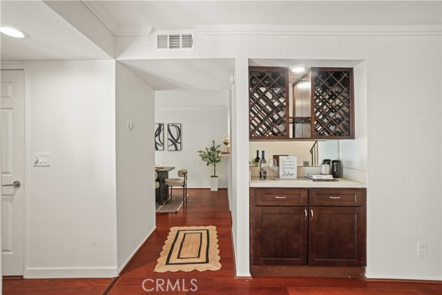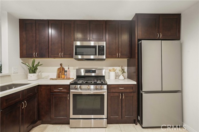 Beautifully Upgraded two story Townhouse in Woodland Oaks, Situated in the desirable Woodland Oaks gated community, this 2-bedroom, 3-bathroom townhouse has been tastefully upgraded throughout. The bright open floor plan features beautiful engineered wood flooring , recessed lighting, and a spacious living room with gas fireplace that opens to a private patio, perfect for entertaining.The remodeled kitchen includes quartz countertops, new cabinetry, stainless steel appliances, and a convenient laundry closet with full-size washer and dryer. The dining area opens seamlessly to the remodeled kitchen and extends to a second private patio, creating the perfect setting for indoor-outdoor entertaining. A powder room completes the main level. Upstairs offers two large ensuite bedrooms. The primary suite features dual closets, including a walk-in, and a brand new vanity and Brand new bathroom. The secondary suite also has its own private bath, brand new vanity and ample closet space. Additional highlights include a detached two-car garage, central HVAC, and thoughtful finishes throughout. Community amenities include a pool, spa, and recreation room, all within beautifully landscaped grounds. Prime location near shopping, dining, Costco, Topanga Mall, The Village, Calabasas Commons, freeway access,