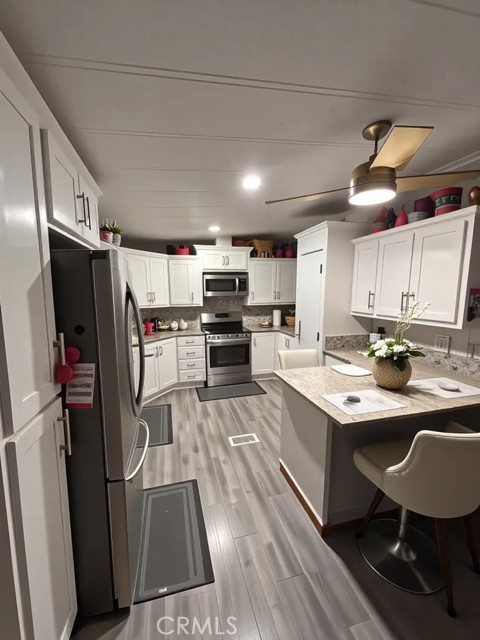 Welcome to your dream home in a prime 55+ senior community! This beautifully upgraded double-wide features stunning new floors, elegant crown molding, and stylish floorboards throughout. With a versatile office that can easily serve as a third bedroom, this space is perfect for both relaxation and productivity. Step outside to find a newly built outdoor shed, ideal for additional storage or hobbies. The community offers vibrant activities and is conveniently located near shopping centers, dining options, and easy access to freeways, making it easy to meet new friends and enjoy everything the area has to offer. Take advantage of the reasonable space rent, with an incredible offer of three months of free rent! The sellers are motivated and willing to negotiate, making this an exceptional opportunity. The newly remodeled bathroom adds a touch of modern luxury, while the wall-mounted TVs in both the living room and spacious primary bedroom are included for your enjoyment. This modern, upgraded home is ready for you to move in and enjoy your retirement. Don’t miss out on making this wonderful community your new home. Act fast—this gem won’t last long!