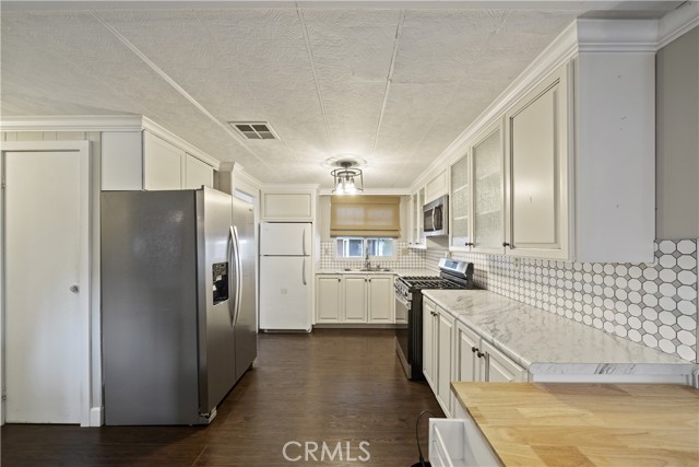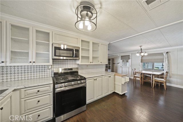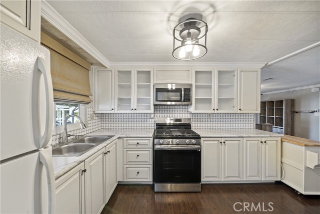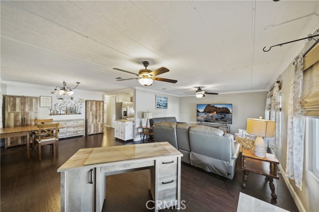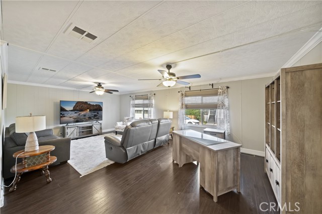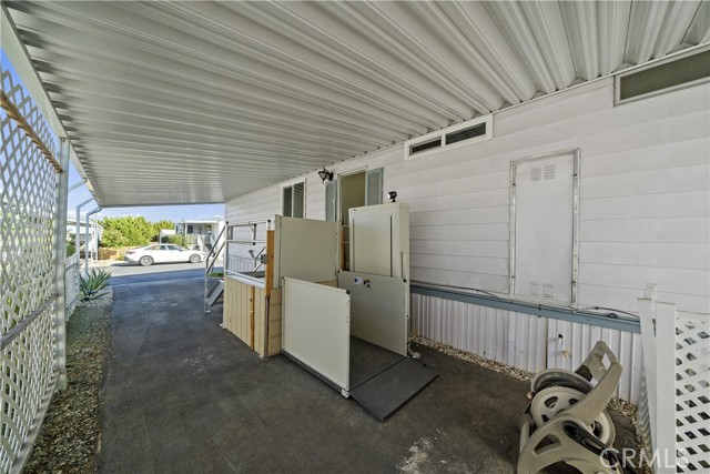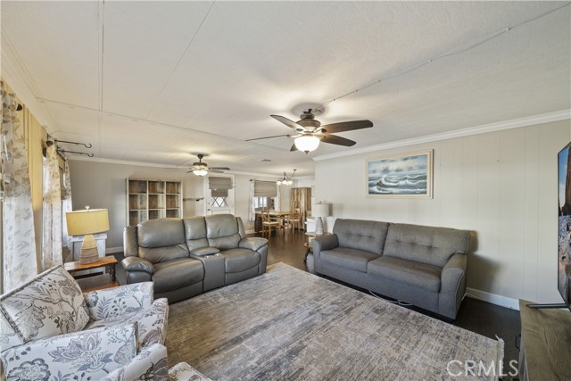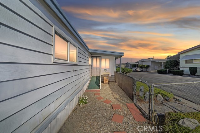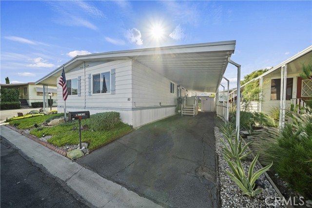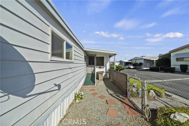 This charming 2-bedroom, 2-bath manufactured home is nestled on a spacious corner lot in the desirable Country Club Mobile Home Estates. One of the standout features of this home is its oversized yard, with beautiful landscaping with curb appeal. A shaded carport offers convenient protection for your vehicles. Step inside to a large and inviting living room with Laminate Wood flooring, ceiling fans/Light, and an abundance of natural light from the oversized newer double pane windows. The open dining area flows seamlessly into the kitchen, which boasts modern touches like newer cabinets, countertops, and a stylish full tile backsplash. It’s fully equipped with stainless steel appliances, a gas range, and a walk-in pantry. Also has a Second White Refrigerator in Kitchen. You'll also appreciate the spacious, enclosed patio (Sunroom) that provides additional living space and offers sliding glass doors that lead to both the front yard and the fenced backyard. The guest bedroom is generously sized, and the guest bath features an updated vanity, light fixtures, and a remodeled walk-in shower. The master bedroom is impressively large, complete with a spacious walk-in closet and plenty of natural light. The master bath mirrors the guest bath with a matching updated vanity and another remodeled walk-in shower. Convenience is key with the laundry room located near the carport. The home also features central A/C and heating, as well as a swamp (Evaporative) cooler window unit in the master bedroom for extra comfort. Plus, the roof has been? recoated, giving you peace of mind for years to come. The backdoor entry features a Powered Platform Lift for entry into the home. Can be sold Furnished as Shown. Don't miss out on this well-maintained home with plenty of space and modern upgrades! Call today for your private showing.