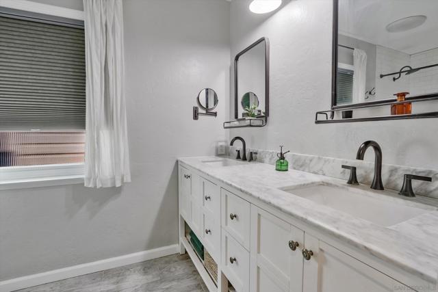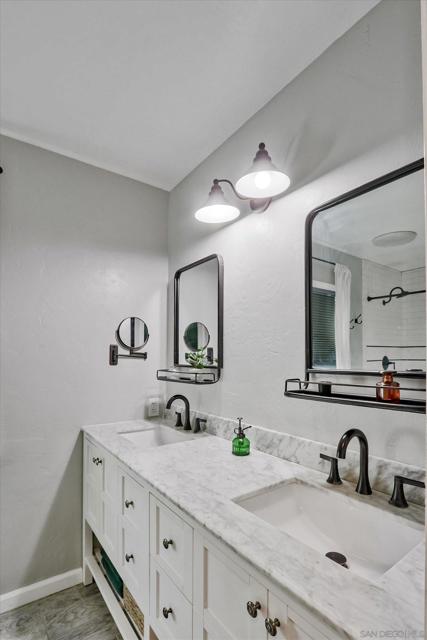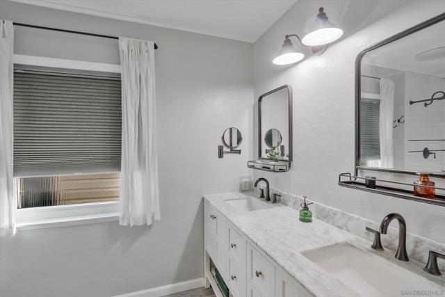 Charming remodeled home in quiet neighborhood close to downtown La Mesa! Located in desirable Brookside community with amazing backyard! Tranquil peaceful backyard and front yard recently remodeled with over $45,000 spent on new landscaping. The backyard is great for entertaining with open and airy views and large patio for BBQ and dining. Beautiful chefs kitchen with custom cabinetry. Garage has been converted to bonus room or optional (4) fourth bedroom with central air. Bonus room could be made into an ADU or JADU! The backyard is large enough for a pool or possible additional ADU! Bathrooms are remodeled including large master shower with dual sink vanity. Master bedroom is very private and perfectly located including en-suite private master bathroom. This home is move in ready and shows pride of ownership.