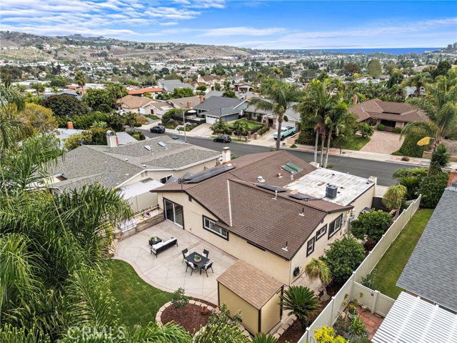 Remarkable opportunity to reside in the coastal cool community of Capistrano Heights. This beautiful home carries a mediterranean vibe through-out and was remodeled down to the studs in 2012. From the curb, the no expense spared is immediately noticed, and it's here you'll find the oversized dark walnut stained entry door with glass in-lay surround with wrought-iron design providing the ability to enjoy the benefits of the coastal breeze. Upon entering, the sun drenched entry boasts, compliments of the large skylights. Going through the home, the dark walnut frames, solid wood stained doors, and baseboards accent the wrought-iron details found in the upscaling lighting. The living room with large picture windows brings in the blue sky with open air views. As well as a luxury earthy feel with a custom rock wall and cozy fireplace. At the heart of the home, the kitchen features rich cabinetry, granite counters, and high end stainless steel appliances. Here you'll find entertaining a breeze with generously sized peninsula opening to the dining area and leading to your backyard oasis. The expansive patio with a custom stone fireplace and a grill master's BBQ dream is part of this large backyard's appeal. The mature landscaping with numerous fruit trees, upgraded vinyl fencing, and shed complete the space making it both stunning, private and functional for every-day life. The bedrooms are generously sized and all feature updated ceiling fans. The 3rd room is easily converted to a bedroom with a reinstated closet. The primary suite features a bathroom with a spa-like shower experience and carries on the mediterrean vibe with artisan tile accents and rich-colored cabinetry. The home provides peace of mind and low cost energy provided by the owned solar panels with battery back-up, tankless water heater with circulation pump, dual pane windows/sliders, epoxy lined/replaced sewer pipes, whole house fan, IOT smart switches, and newer HVAC with smart thermostat and replaced roof in 2012. Enjoy the coastal life, living only 2 miles away from Doheny Beach and Dana Point Harbor and only 2 mile from downtown San Juan Capistrano This home is more than a place to live -- it's where every thoughtful detail and exceptional location elevates lifestyle.