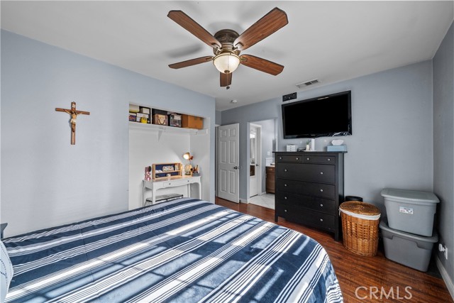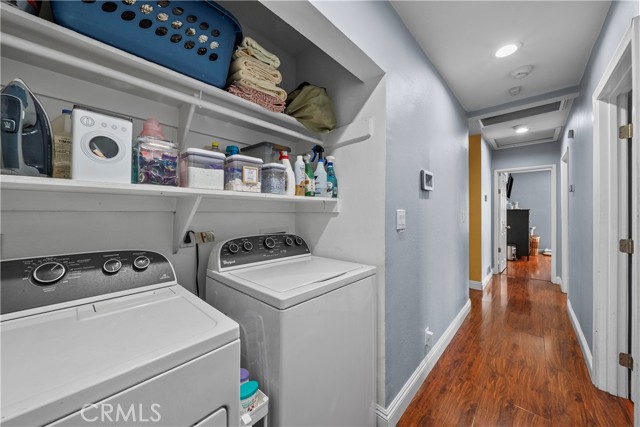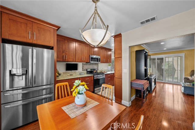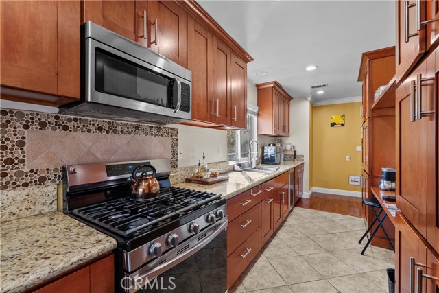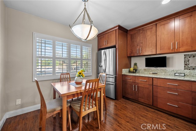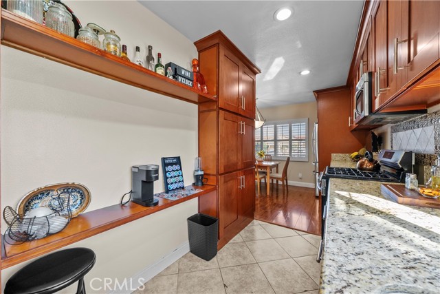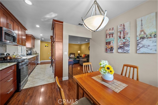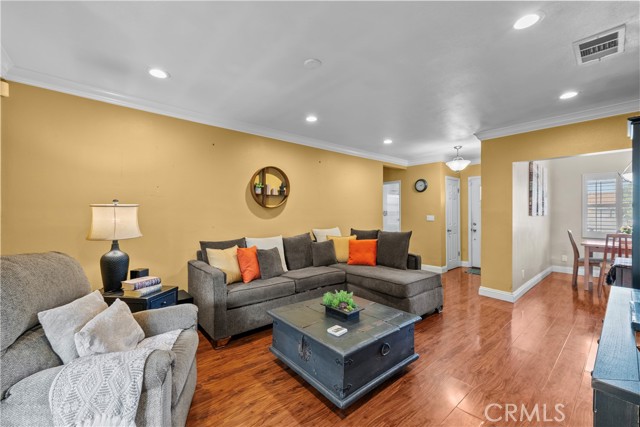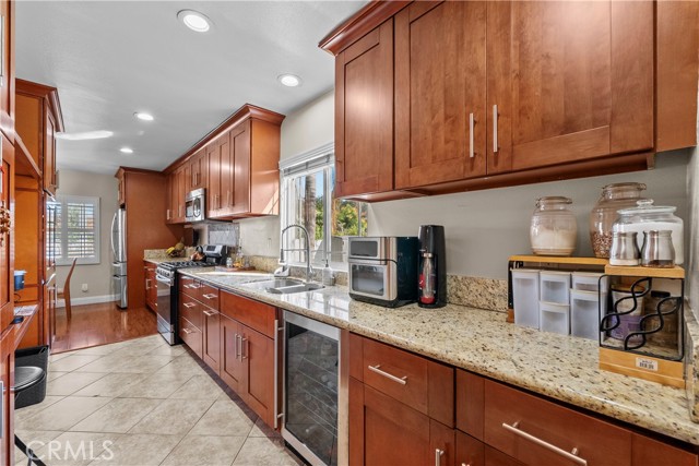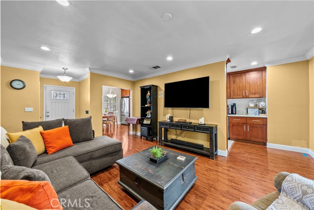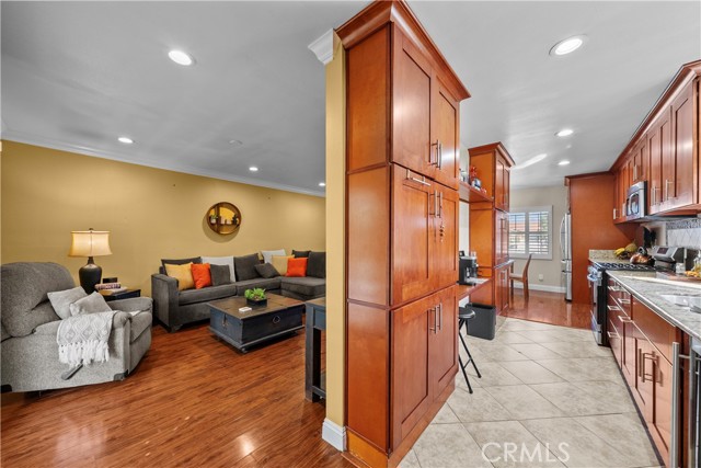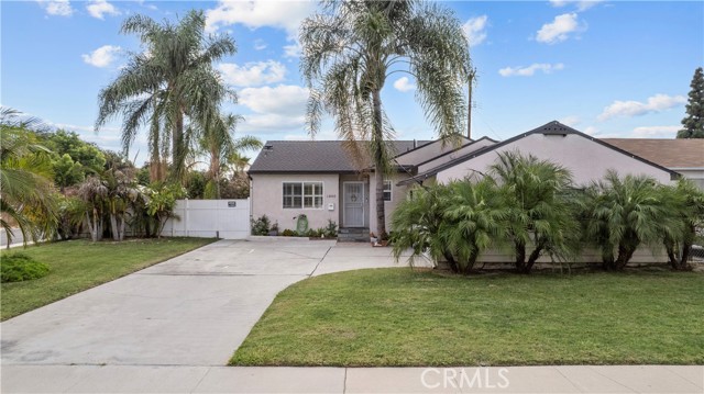 Beautifully Updated Corner-Lot Home with Outdoor Entertaining Space! Move-in ready and upgraded, this stylish 3-bedroom, 2-bath home sits on a spacious corner lot with possible RV access and fantastic curb appeal. Palm trees, dual pane windows, and custom exterior finishes set the tone before you even step inside. The interior features laminate flooring, plantation shutters, recessed lighting, and custom paint with detailed crown molding and baseboards that create a warm and polished atmosphere throughout. The remodeled kitchen is a Standout! Showcasing rich cherrywood cabinets, granite countertops, stainless steel appliances including a wine fridge, tile flooring, and a large pantry with plenty of storage. Both bathrooms have been tastefully updated. The hall bath features a newer vanity, tile shower, and matching tile floors, while the primary suite offers an upgraded tile shower, updated vanity, and a walk-in closet for added convenience. All three bedrooms are generous in size and offer flexibility for family living, guests, or a home office. The outdoor space is ideal for relaxing or entertaining, featuring a newer covered patio with recessed lighting and pavers that create a comfortable, finished area for dining or lounging. The corner lot provides added privacy and room to grow, along with the benefit of potential RV access. With modern upgrades, inviting finishes, and a prime location, this Norwalk gem offers the California lifestyle at its best!