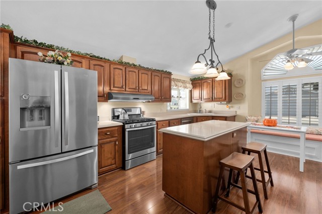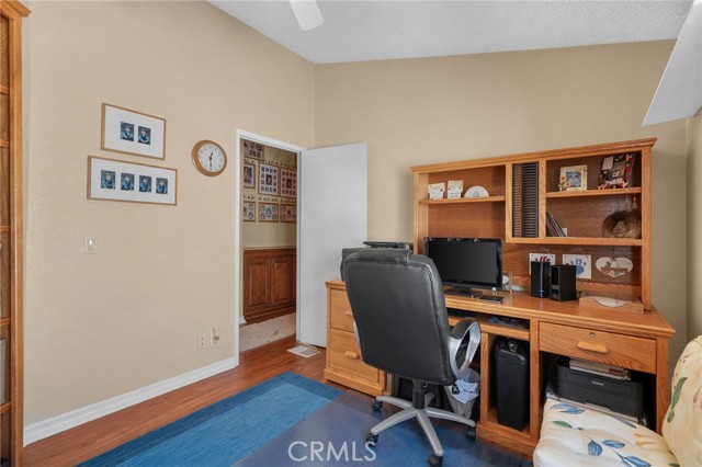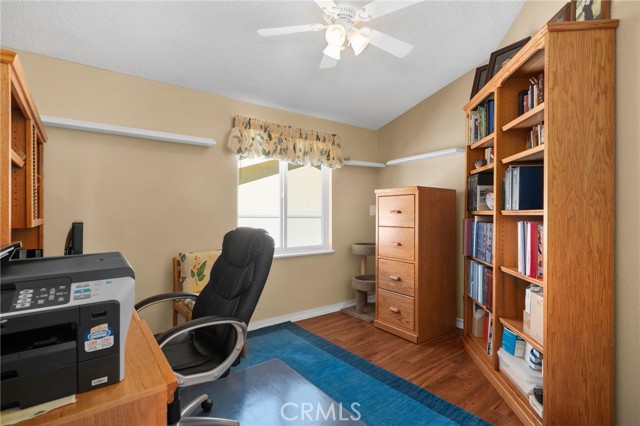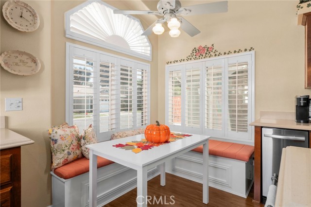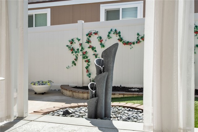 This charming, well-maintained, move-in ready home offers wonderful curb appeal with lush artificial turf and a beautiful brick walkway leading to the front door. Inside, a bright entry welcomes you into the formal living room and dining area. The spacious kitchen is a highlight, featuring an island, abundant cabinetry, plantation shutters, a cozy breakfast nook with a built-in bench, and a bay window overlooking the backyard. Additional features include an indoor laundry room with cabinetry, a sun-filled primary bedroom with an adjoining retreat space, and a primary bathroom with dual sinks, a large soaking tub, and a walk-in shower. There is also a secondary bedroom, a separate home office (which could serve as an additional bedroom), and another full bathroom. Step outside to a beautifully manicured backyard, complete with a covered patio, artificial turf, and a tranquil water fountain feature. This meticulously cared-for gated community offers outstanding amenities, including a clubhouse, pool, spa, tennis court, grounds maintenance and much more! Both the home and the neighborhood reflect pride of ownership and attention to detail.