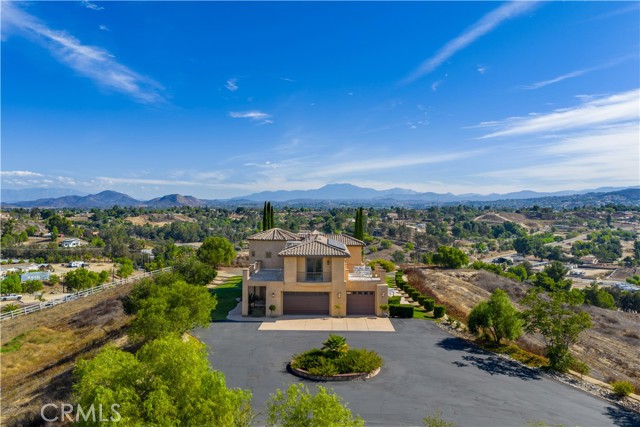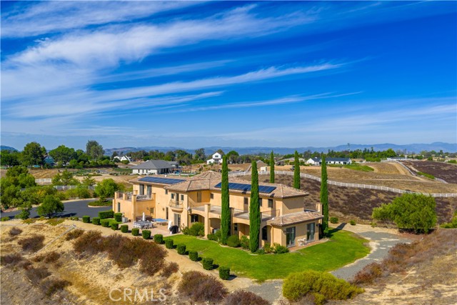 Stunning custom-built estate in the heart of Temecula wine country! Built in 2012, this impressive 5-bed, 4-bath home offers approx. 5,088 sq.ft. of elegant living space on a private 5.5-acre lot. A gated driveway leads to a peaceful retreat with sweeping vineyard and hill views. The open floor plan features soaring ceilings, a chef’s kitchen with premium appliances, formal dining, and multiple living areas. The luxurious primary suite has a spa-inspired bath, walk-in closets, and a private balcony. Outdoor spaces include expansive patios, landscaped grounds, and plenty of usable land for horses, vineyards, or future guest house/ADU — ideal for both personal living and investment potential. A 3-car garage plus ample parking. Close to wineries, dining, shopping, and freeway access — privacy and convenience in one exceptional property.