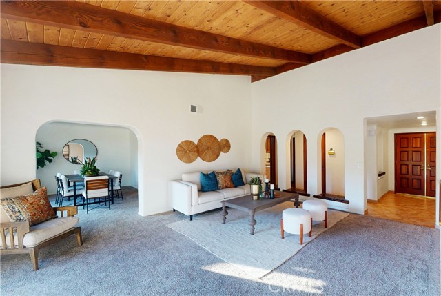Fabulous Old Spanish in the heart of Miraleste area of Rancho Palos Verdes with Harbor view and spacious backyard. Walking distance to convenience store, restaurants, L A County Fire Dept and easy access to freeways and Long Beach. This "one of a kind" Old Spanish has just been refurbished with new paint inside and out, remodeled bathrooms, and features Primary Suite on the main level of the home. As you enter through the spacious outdoor patiio, you are amazed at the soaring wood beam ceilings and the light pouring in from the outside deck looking out to the L A Harbor. The main level of the home features formal living room with adjacent Dining room and conveniently located kitchen with informal breakfast eating area. The Primary suite is located on the main level with attached remodeled bath. The downstairs level features a huge family room with wet bar and wood burning fireplace plus 3 other bedrooms, one of which has built in cabinets if one choses to use that bedroom as an office/bedroom combination. You will love the easy access to shopping, movies, golf courses,restaurants and theatres without leaving the peninsula. Also walking distance to schools and the new South Bay campus for UCLA. This home is Special. Come by this weekend and take a look.