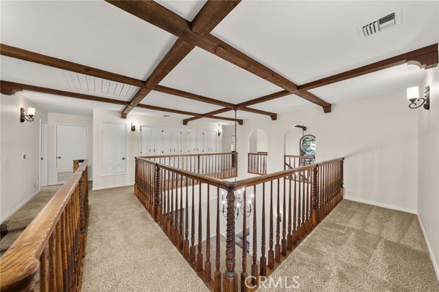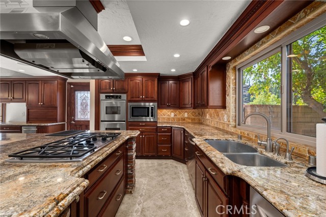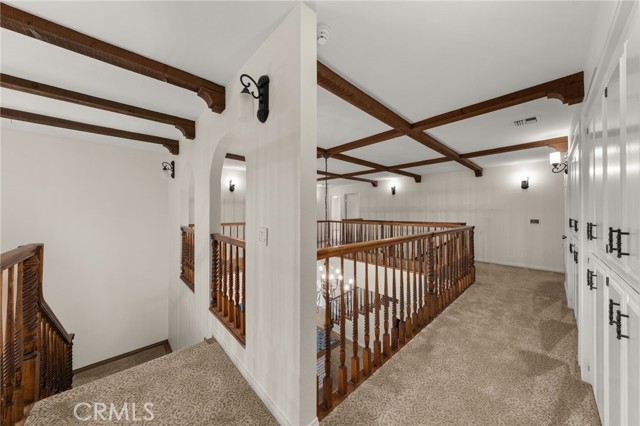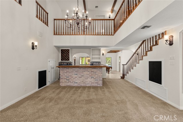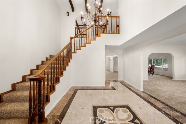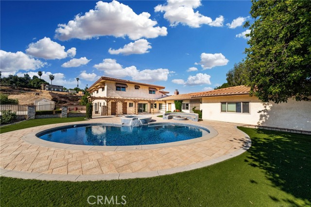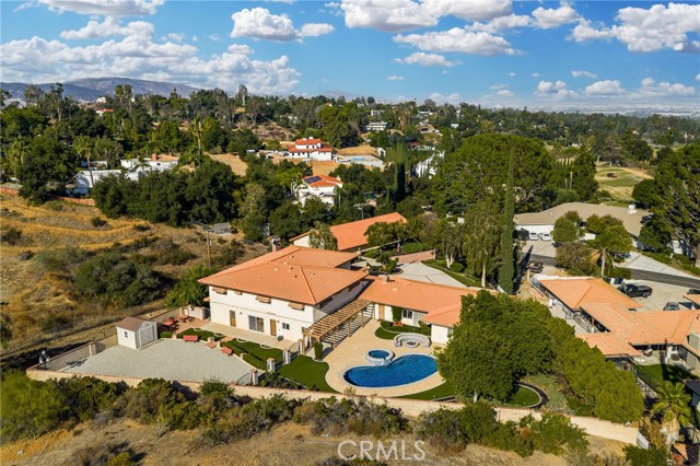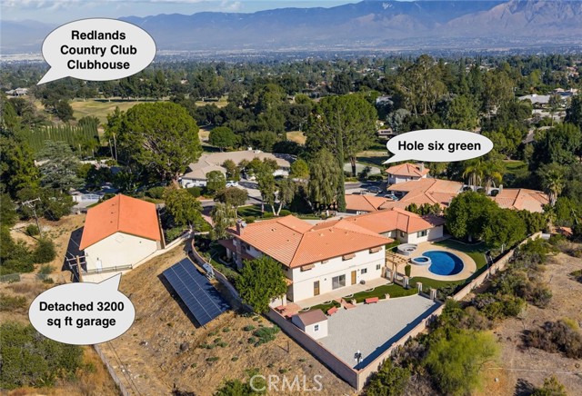 South Redlands five bedroom pool home with an attached seven car garage, detached 3200 square foot garage, and over 5500 square feet of living space on a nearly 50K square foot lot - just a chip away from the green at Redlands Country Club hole six! When you approach the home, you are greeted by a sizable circular driveway at the top of the private street that is Country Club Lane. You enter the home into the formal front foyer, which features the first staircase and vaulted ceilings. This well lit space displays stained glass pieces from local artist, Tom Medlicott. The entry is flanked by two living areas, a formal living room and a family room with an exposed beam ceiling; both of which feature large fireplaces. The family room, which has a direct access into the attached seven car garage (fully finished with tile flooring and a built in air compressor), opens up into the game room. That flows right into the center of the home, where you'll find a full sized wet bar and a second set of stairs. This space at the center of the home opens up to the second story interior balcony. Opposite the game room is a formal dining area, with direct access into the kitchen. It's generous layout features tremendous counter space, two dishwashers, a double oven, gas cooktop, wine fridge, prep sink, and plenty of storage. There is also an eat in dining area with a slider leading out into the back yard. Windows and doors throughout the home have been upgraded. Off of the kitchen, you'll find a large laundry room with additional counter space, a separate sink, more cabinets, and a small built in office area. Heading outside, the pool and spa with a glass mosaic finish serve as the centerpiece of the yard, which also has a gas fire-pit and low maintenance landscaping features. Five bedrooms are upstairs, including the primary suite. A newly renovated bathroom features a sizable dual vanity with a make up counter, a soaking tub, walk in shower, and a separate toilet room. The other bathrooms have been recently upgraded as well with new counters, fixtures, flooring, and lighting. There is a private office space off of the primary bedroom. Heading back outside, the exterior garage space is as impressive as the home. One of the largest private garages in Redlands, this is perfect for your car collection, the ultimate home gym or workshop, multiple class A RVs, or all of the above. Excellent Redlands Schools.