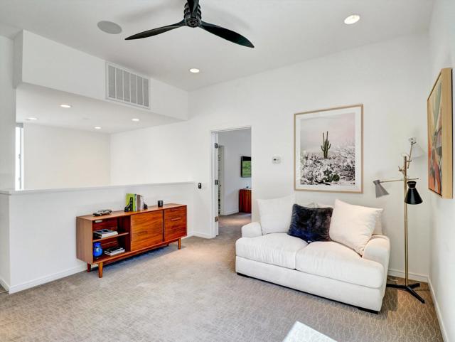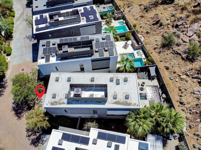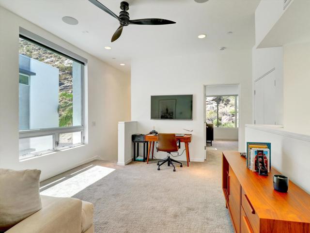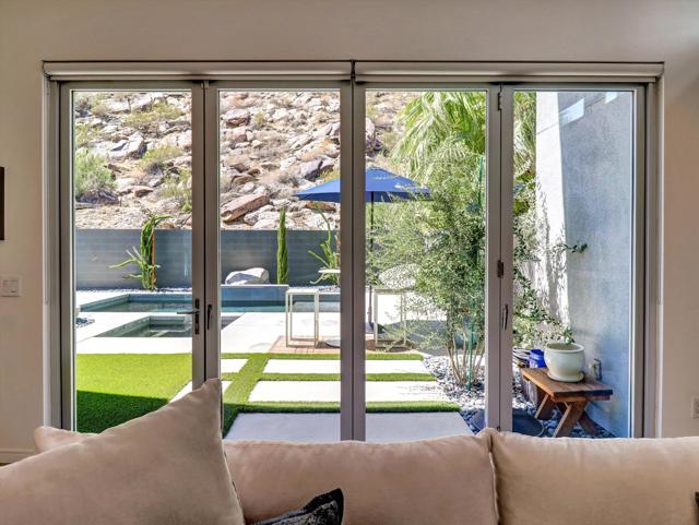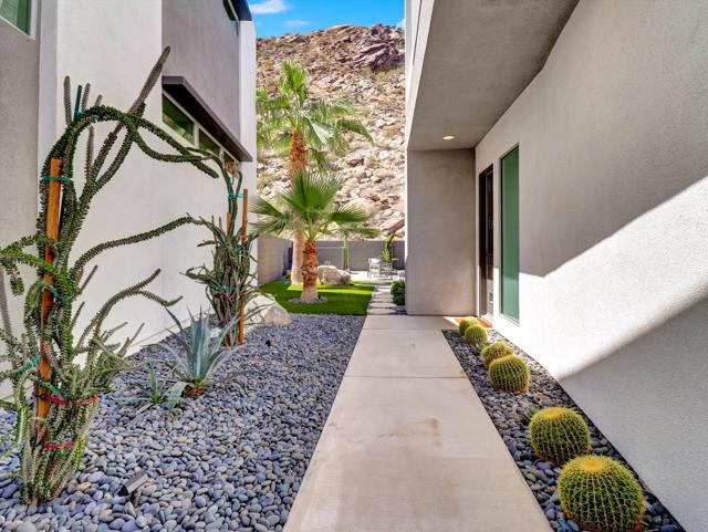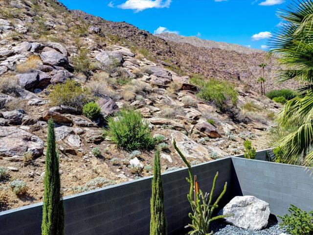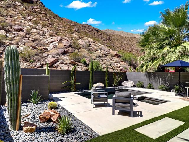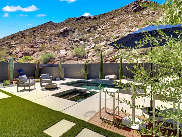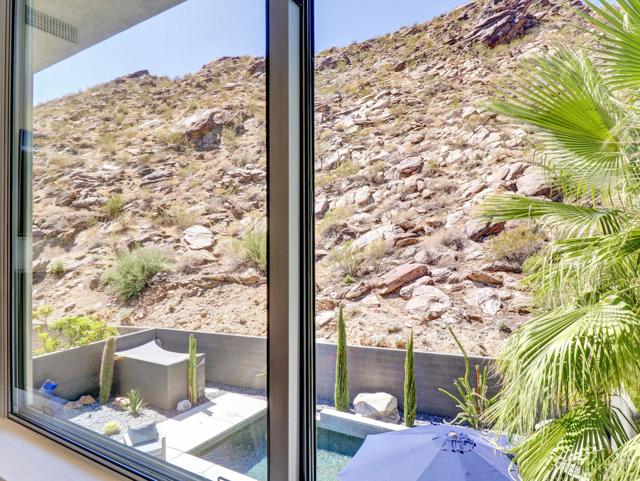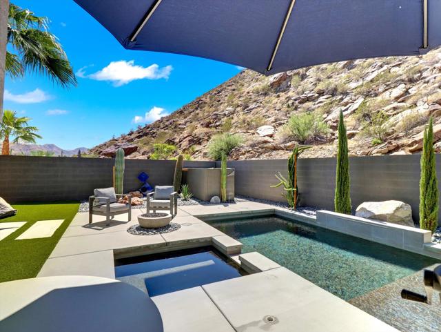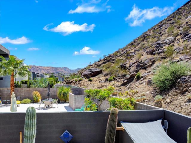 This spectacular two-story Dakota home literally hugs Mount San Jacinto. This intimacy with nature offers a unique sense of privacy and a front-row seat to observe the seasonally roaming Big Horn Sheep. A folding wall of glass opens the first-floor great room to an entertainer's dream backyard, complete with a private pool and spa. A finished, two-car garage is adjacent to the chef's kitchen. A powder room completes the first floor. Upstairs are two large, en suite bedrooms with a loft space in between. This multi-purpose space currently serves as both a TV room and a home office. Mature landscaping throughout the gated community; paver roadways; and well-maintained, contemporary-looking facades elevate The Dakota. And, as a pride of ownership, 1135 Iris was re-roofed in May of 2024. This lovely home is less than ten years old and offers a new owner a sophisticated retreat or, for the lucky, a full-time Palm Springs residence. Open houses when scheduled; otherwise, this lovely home is seen by appointment.