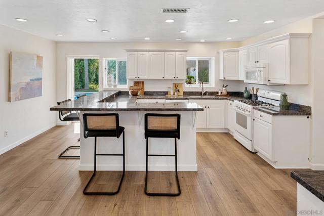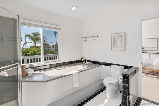 Welcome to your Bay Park retreat, where every day feels like a vacation. This spacious 5-bedroom, 3-bath home is designed for indoor/outdoor living—complete with sparkling pool with updated coping and drain lines, new patio, and the perfect perch for enjoying San Diego’s famous sunsets and SeaWorld firework shows. Step inside to soaring ceilings and a light-filled entry that flows into an open living and dining space, ideal for gathering with family and friends. Recent updates include owned solar, newer HVAC and roof, new flooring, fresh paint, awesome flex room upstairs and more—making this home move-in ready. Upstairs, the primary suite opens to a private deck overlooking the bay, perfect for morning coffee or evening relaxation. The ensuite bathroom features a jetted tub and vintage tile for a touch of charm. A unique spiral staircase provides easy access to sweeping views without having to pass through bedrooms. All of this is tucked in a highly desirable location, just minutes to the freeway, beaches, the bay, and local attractions. Whether you’re hosting poolside, taking in the fireworks, or exploring the best of San Diego, this home offers it all.