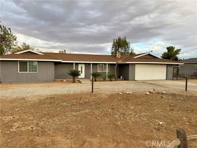 Hesperia 3 bedroom 2 baths, spacious dining and living room combination with a fireplace, good size kitchen granite countertops, newer dual pane windows sliding door, front door, new door connecting to garage, 2 car garage plus a detached garage seller was in the process of an ADU conversion fenced and cross fence, lots of trees, near Bear Valley for easy access to frwy. HVAC will be replaced before close of escrow